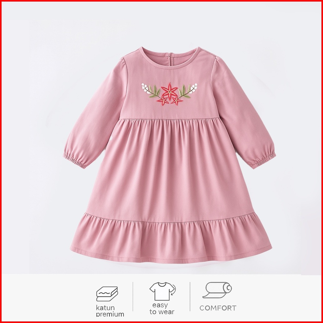 Hellomini 2-13t Soraya Dress Gamis Katun Bordir Anak Perempuan Baju Lebaran Muslim 2025 Hmn3