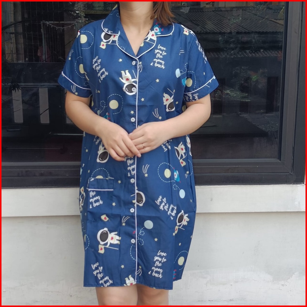 Jnv Piyama Daster Wanita Motif Karakter - Baju Tidur Daster - Bahan Katun