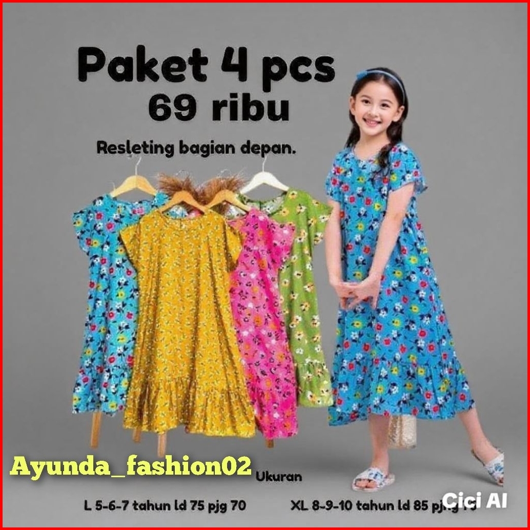 Promo Paket 4pcs 60rb Daster Anak Perempuan Rayon Adem Motif Lucu Usia 3-9 Tahun
