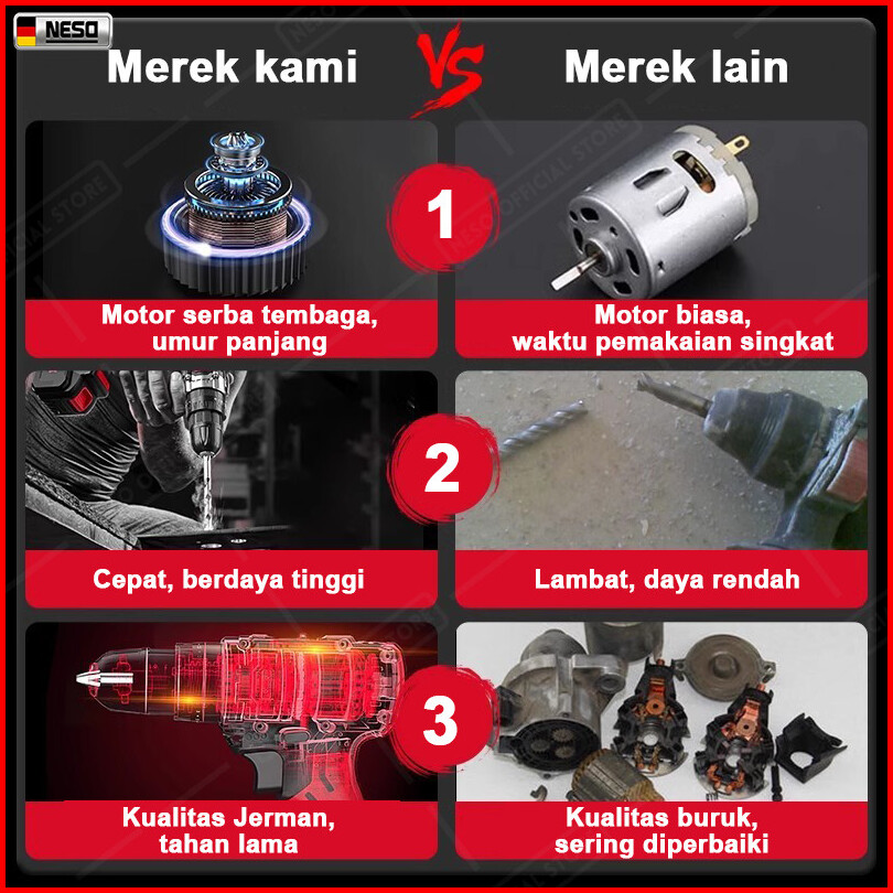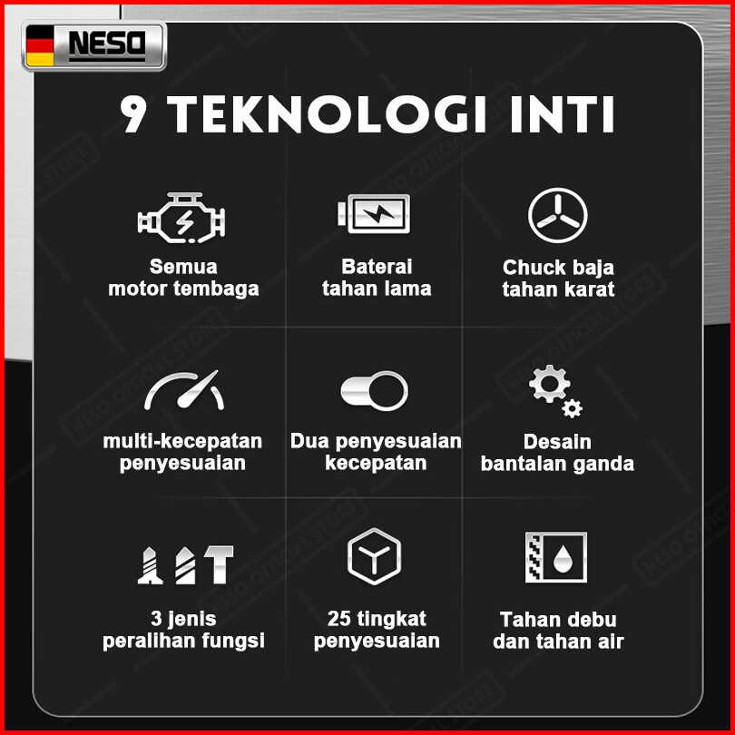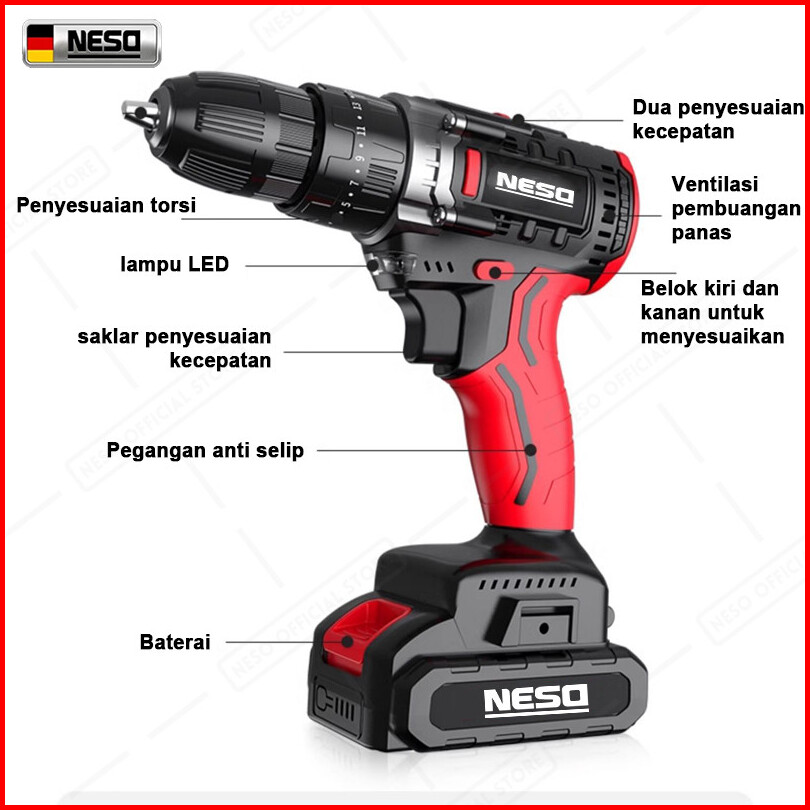 Neso Jerman 3in1 Mesin Bor Listrik Bor Baterai Bor Listrik Bor Tanpa Kabel Mesin Cordless Screwdriver Murah Elektrik Dri