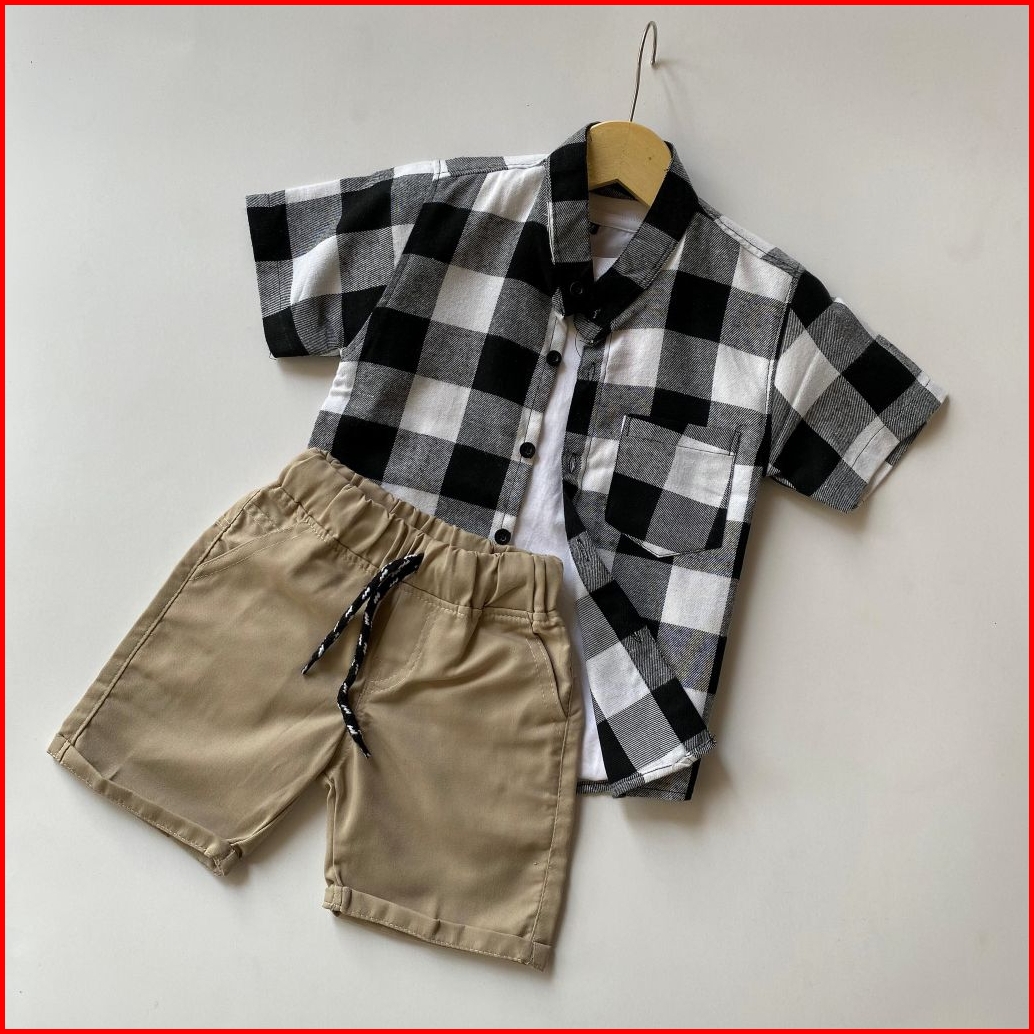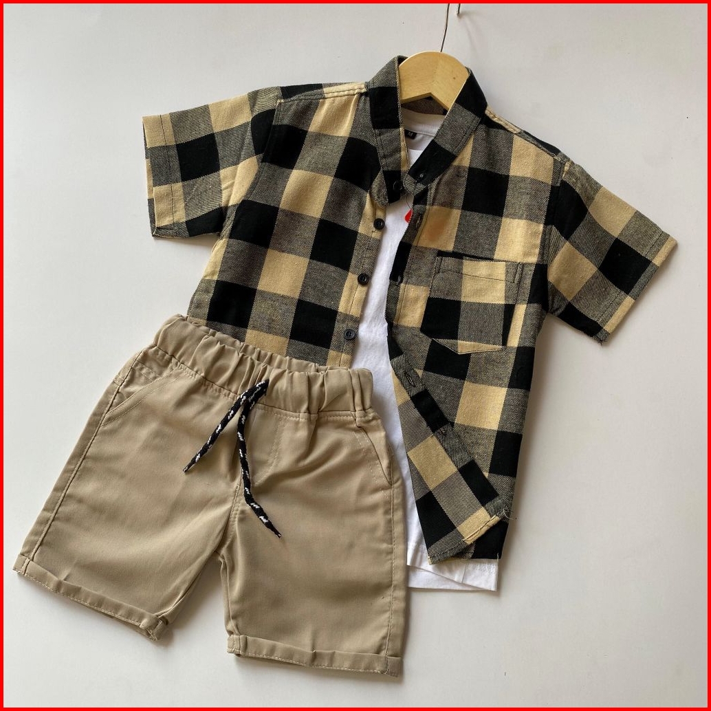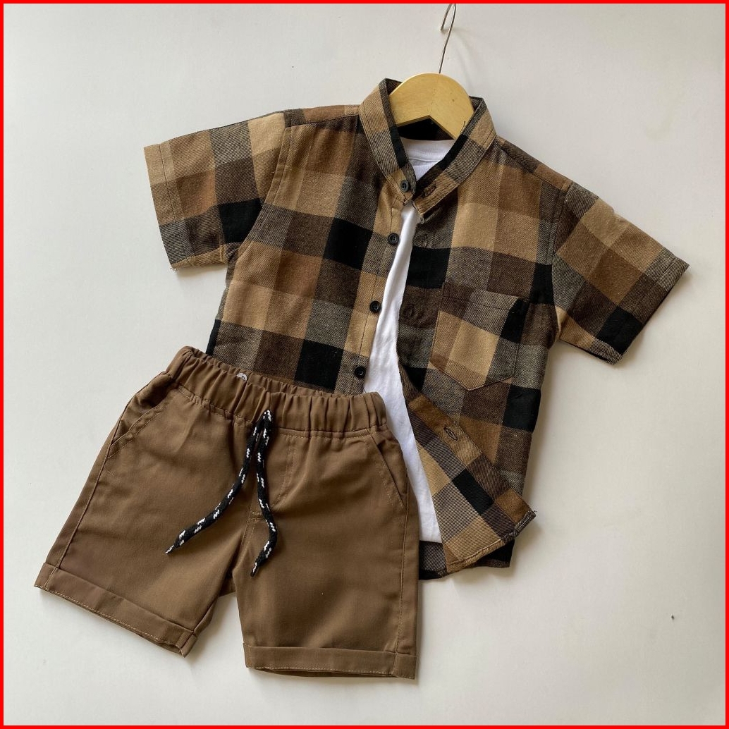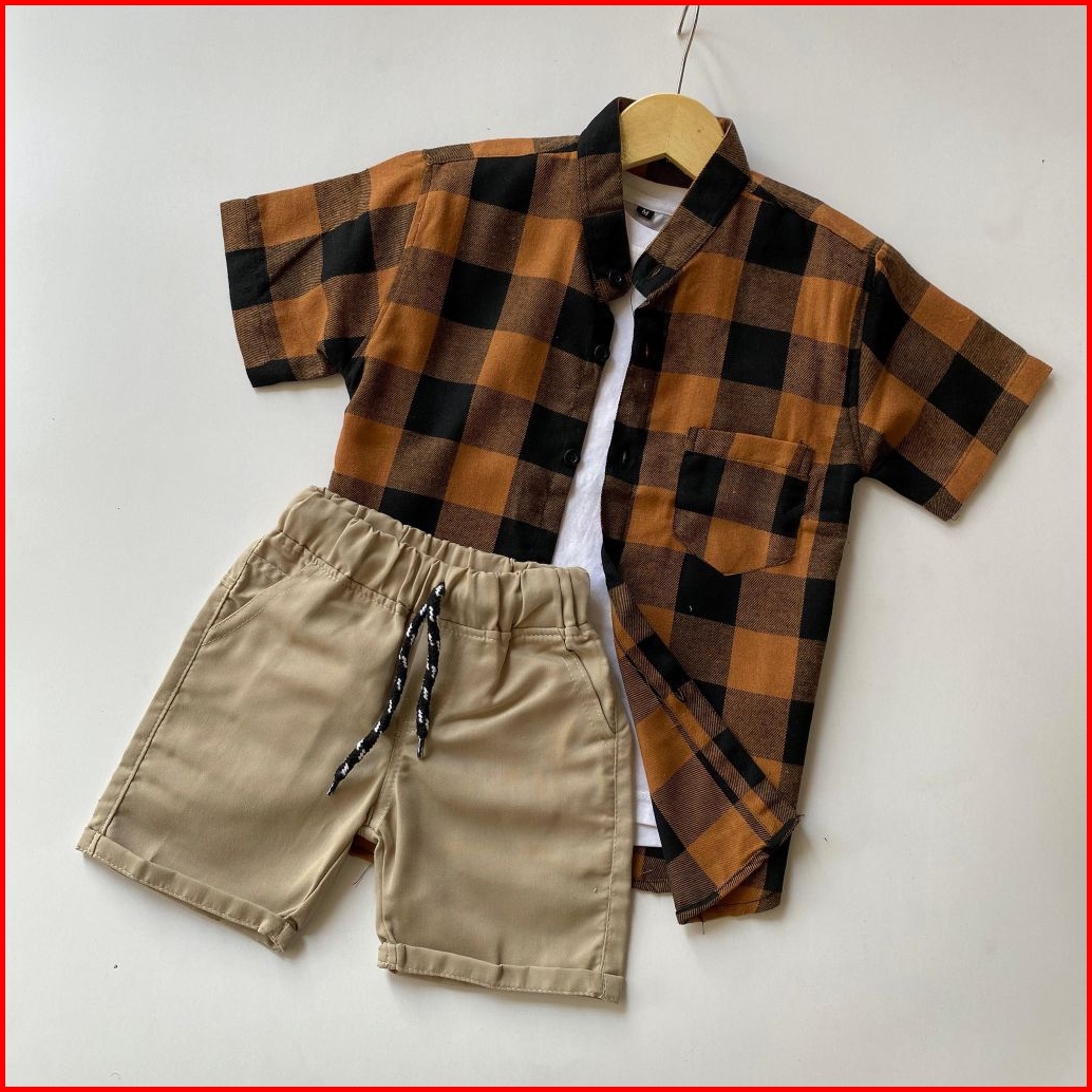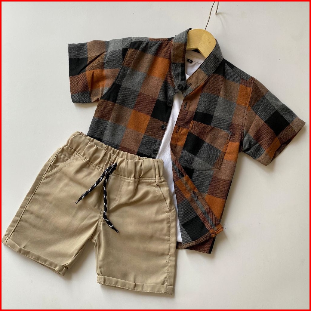 Setelan Anak Laki Laki Kemeja Flanel Celana Broadshort Twill Union Usia 1 - 5 Tahun