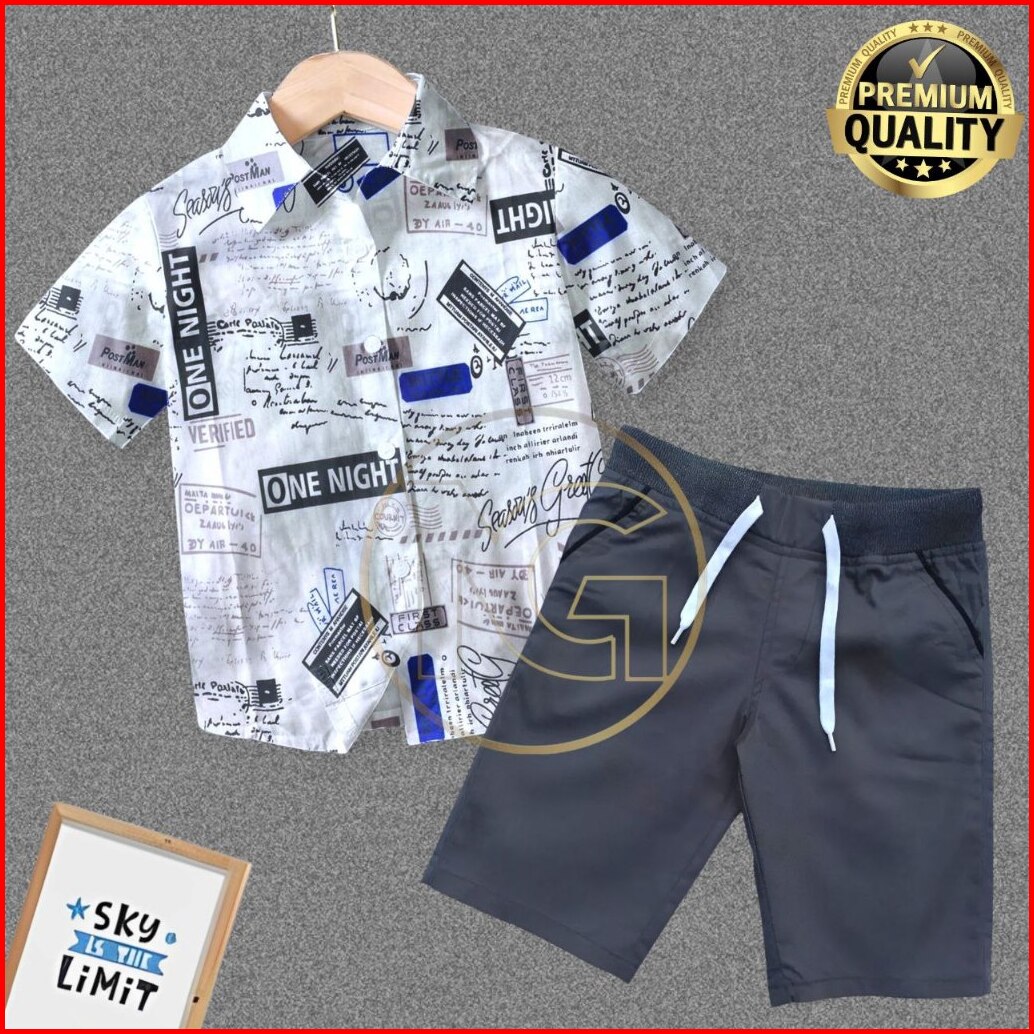 Setelan Anak Laki Laki Kemeja Pendek Motif Umur 1-10 Tahun Stelan Anak Cowok Tanggung