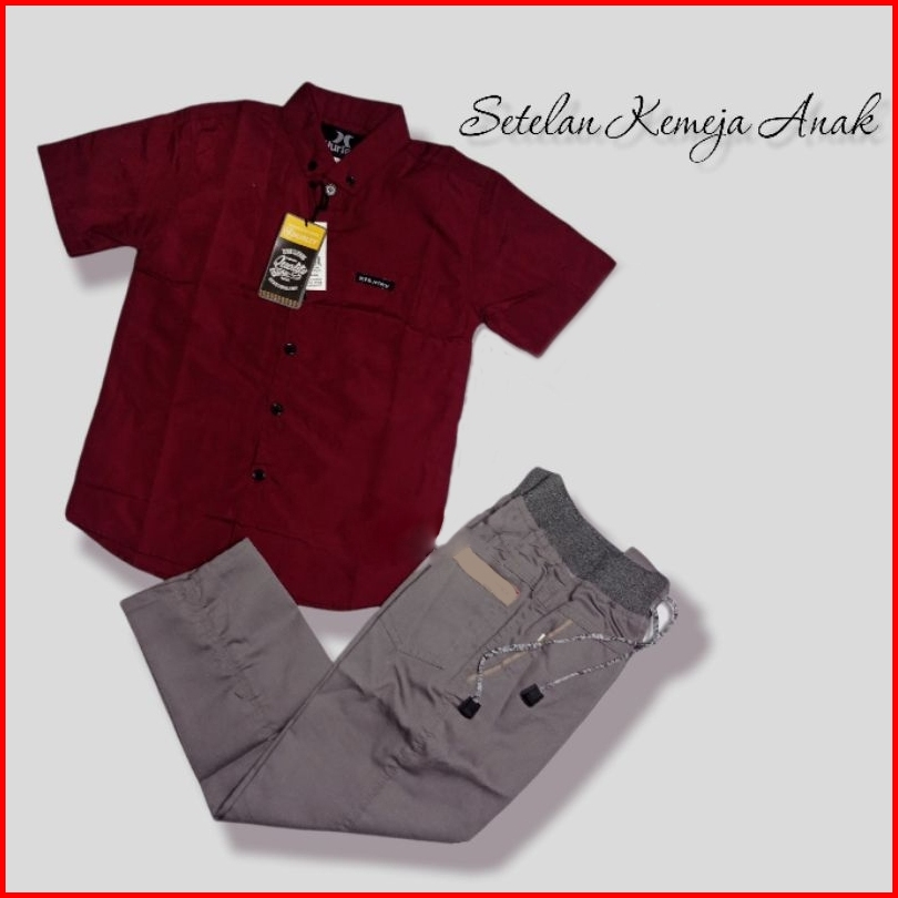 Setelan Kemeja Anak Laki Laki Celana Panjang Chinos Polos Katun Premium