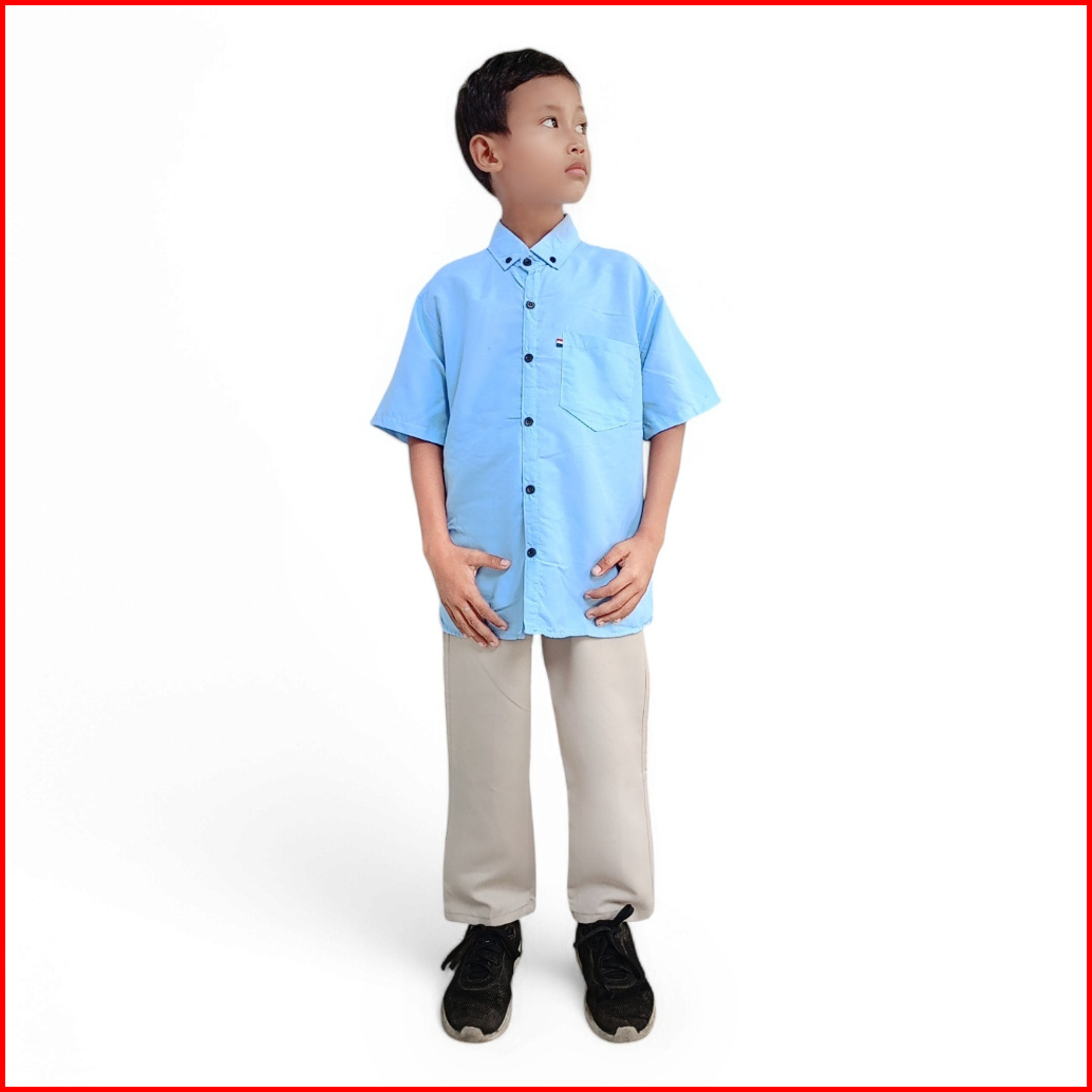 Setelan Kemeja Anak Lengan Pendek Celana Panjang Chinos Anak Laki-laki Usia Umur 1-14 Tahun