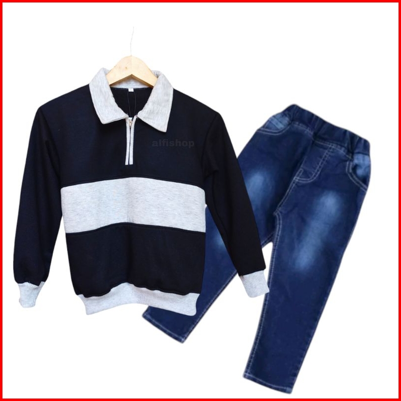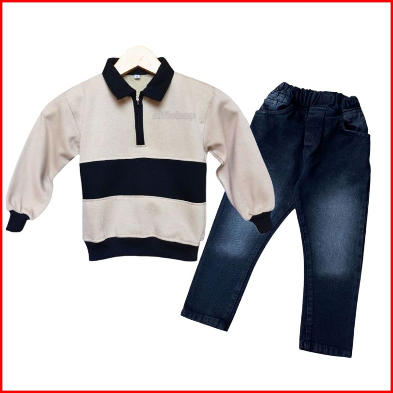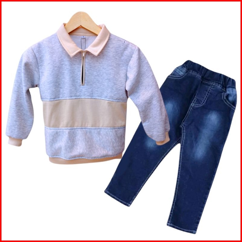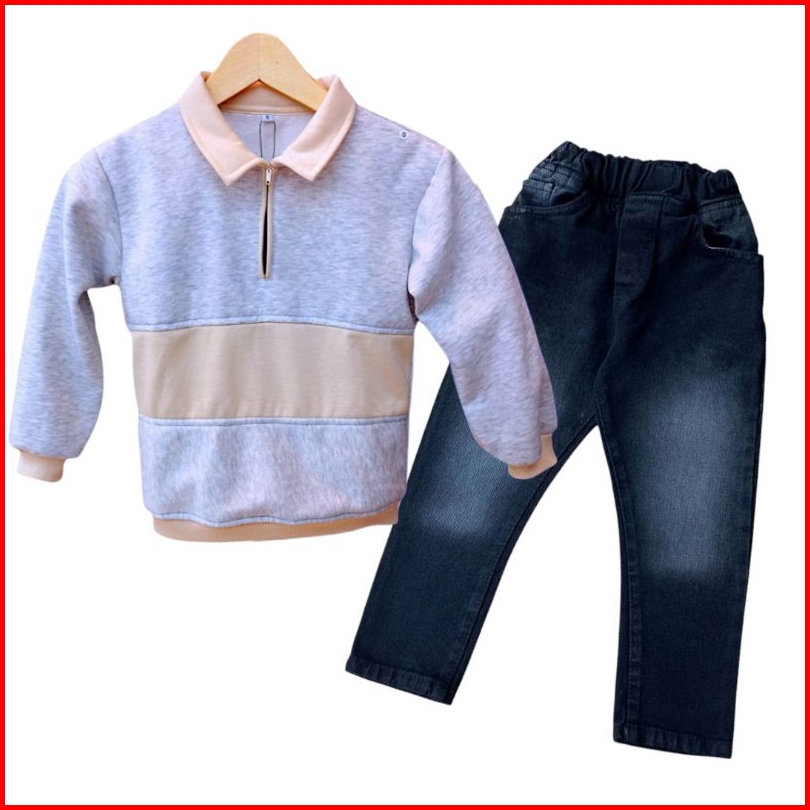 Setelan Anak Laki Laki Switer Kerah Rugby Dan Celana Jeans Olnevy Untuk Anak 1-12thn