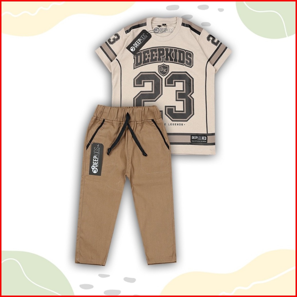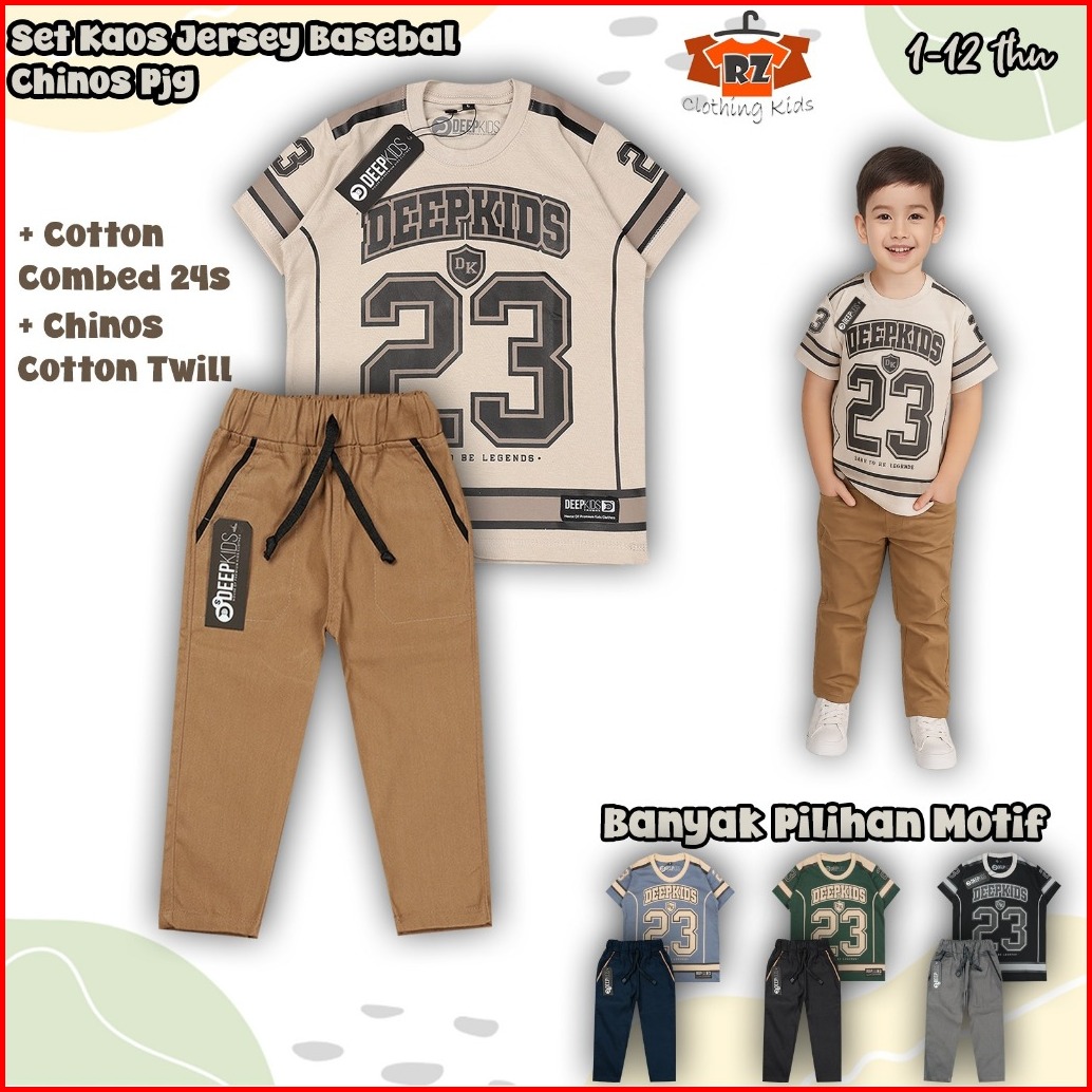 Setelan Anak Laki Laki Kaos Jersey Bahan Cotton Combed Dan Celana Cino Panjang Premium Usia 1 2 3 4 5 6 7 8 9 10 11 12 T