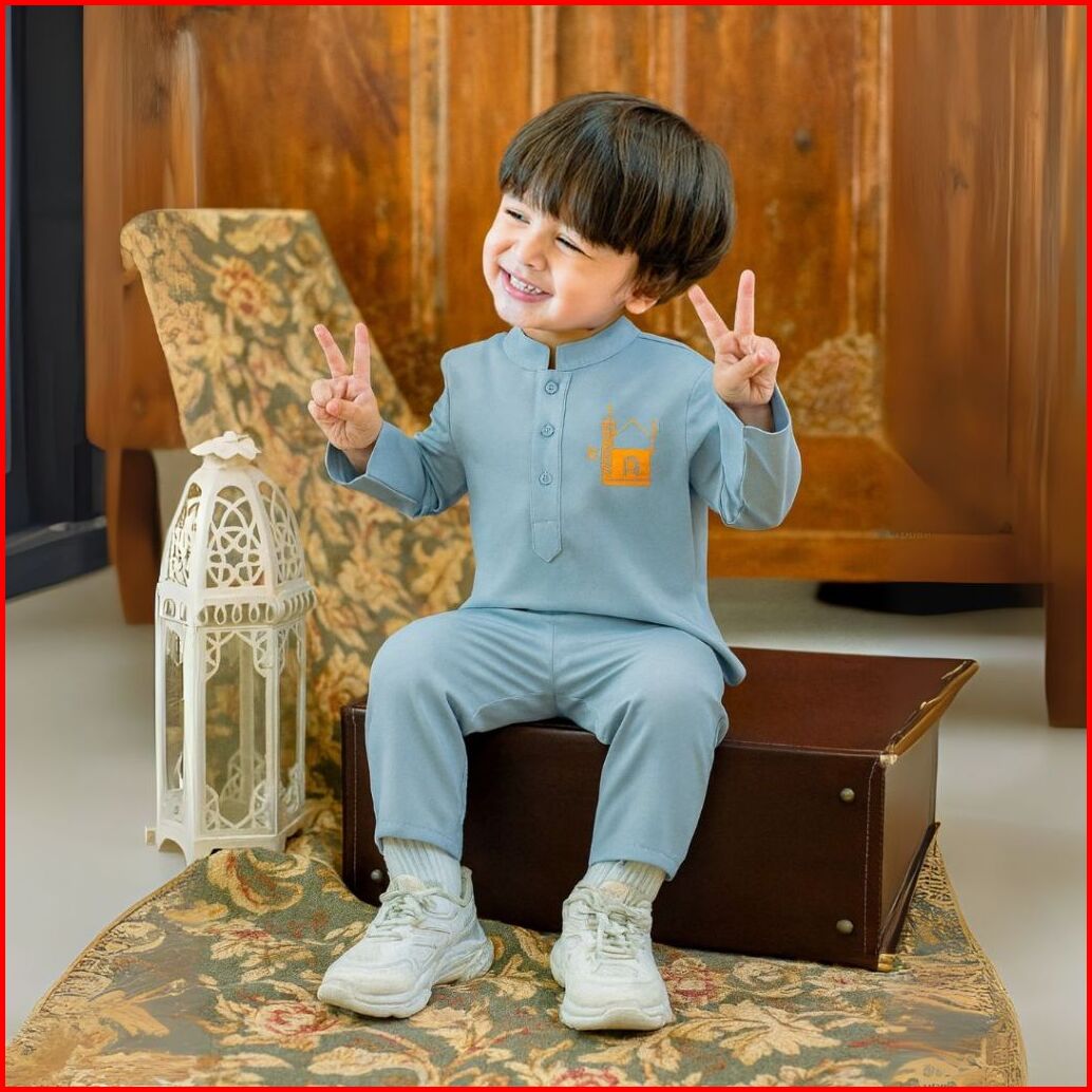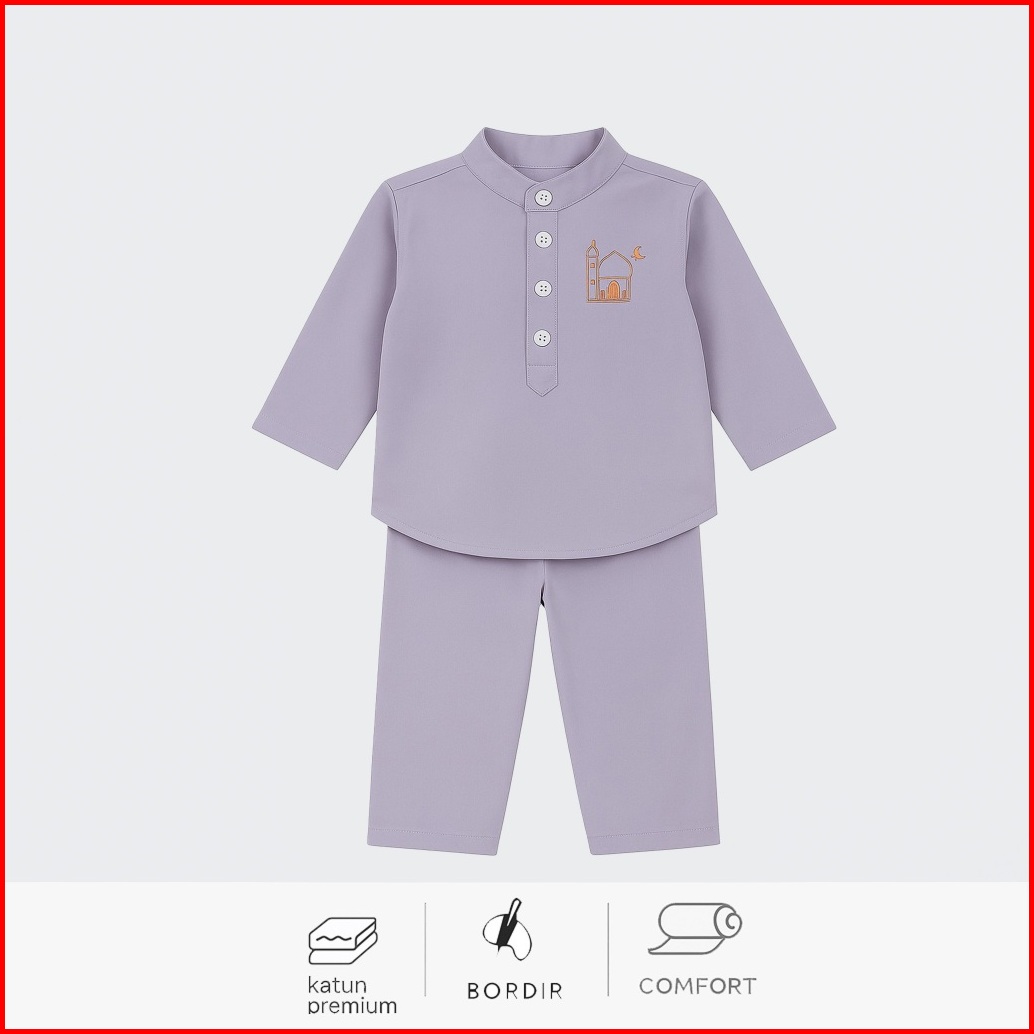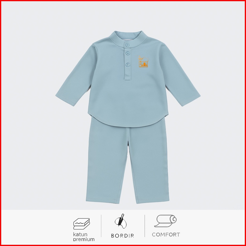 Hellomini 2-13t Raya Koko Set Katun Bordir Anak Laki Laki Baju Lebaran 2025 Lengan Panjang Hmn2