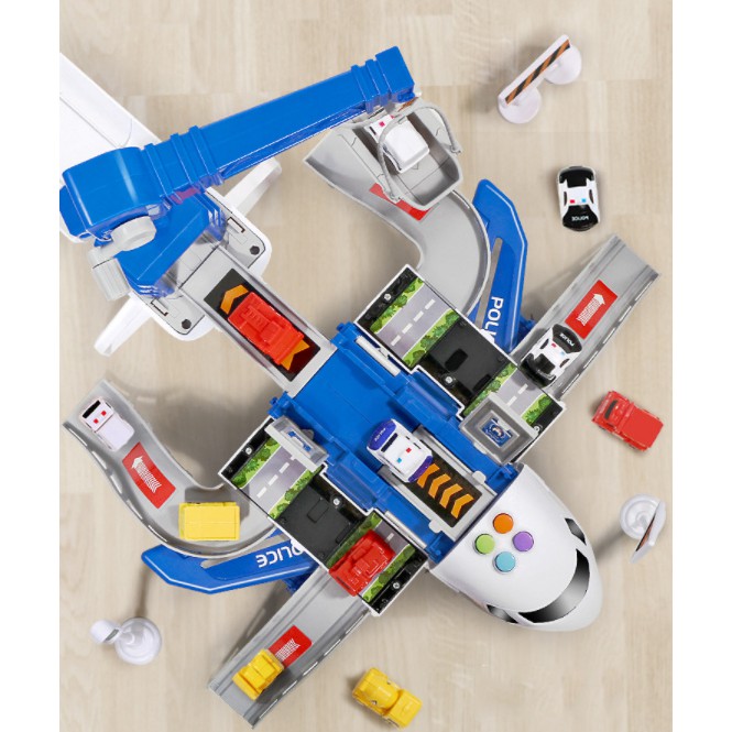 Mainan Anak Pesawat Crane + 3 Mobil lampu musik efek suara diescast & Helikopter + 4 mobil metal lampu musik