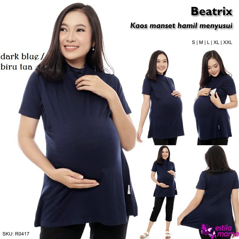 Estila Mama - Beatrix Kaos manset inner hamil menyusui lengan pendek turtle neck part 1 - Biru/Hitam/Marun/Coklat/Abu