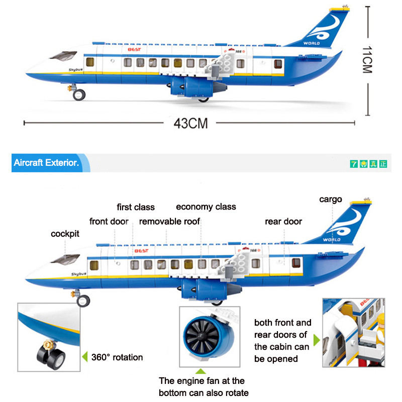 Mainan Pesawat Terbang Airliner Plane Mainan Balok Susun Brick City Cargo Aircraft Plane Storage Airport Airbus Airplane Avion Technical Creative Building Blocks Educational Toys for Children