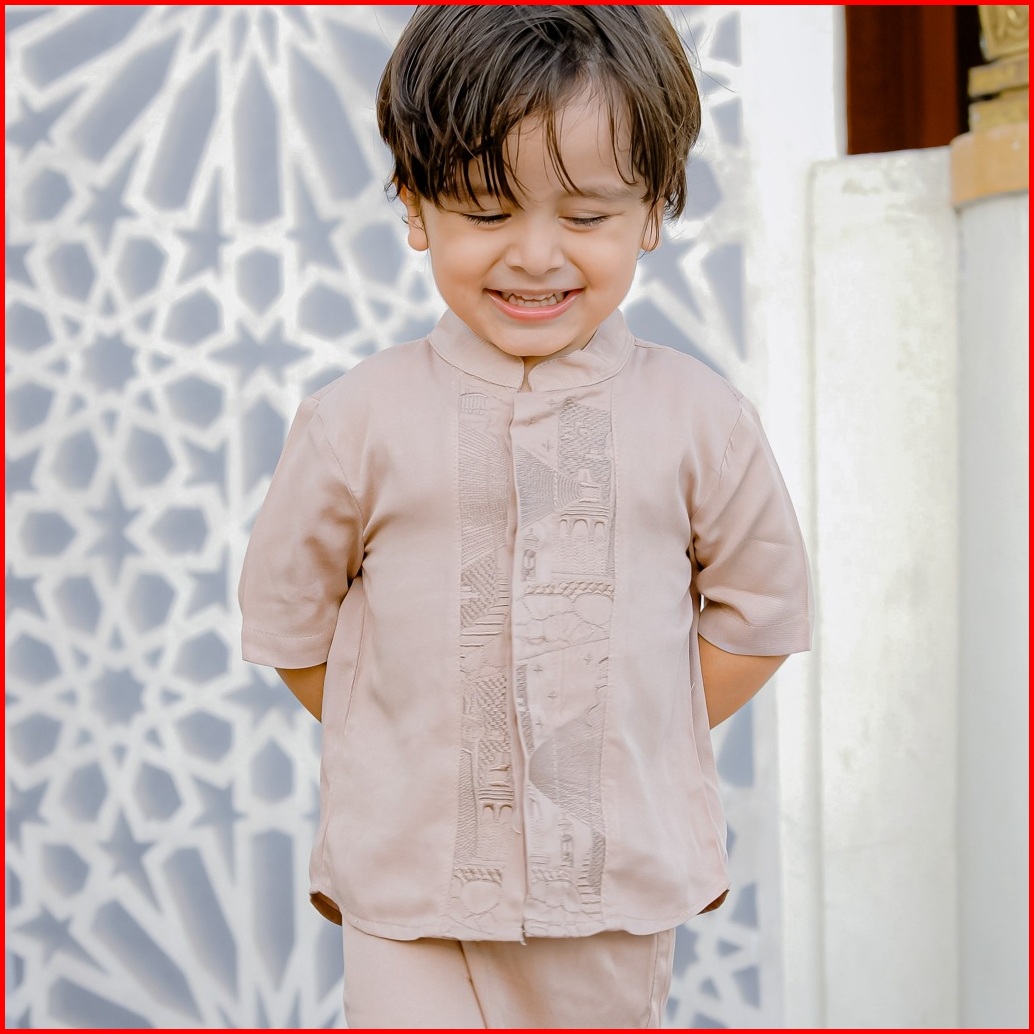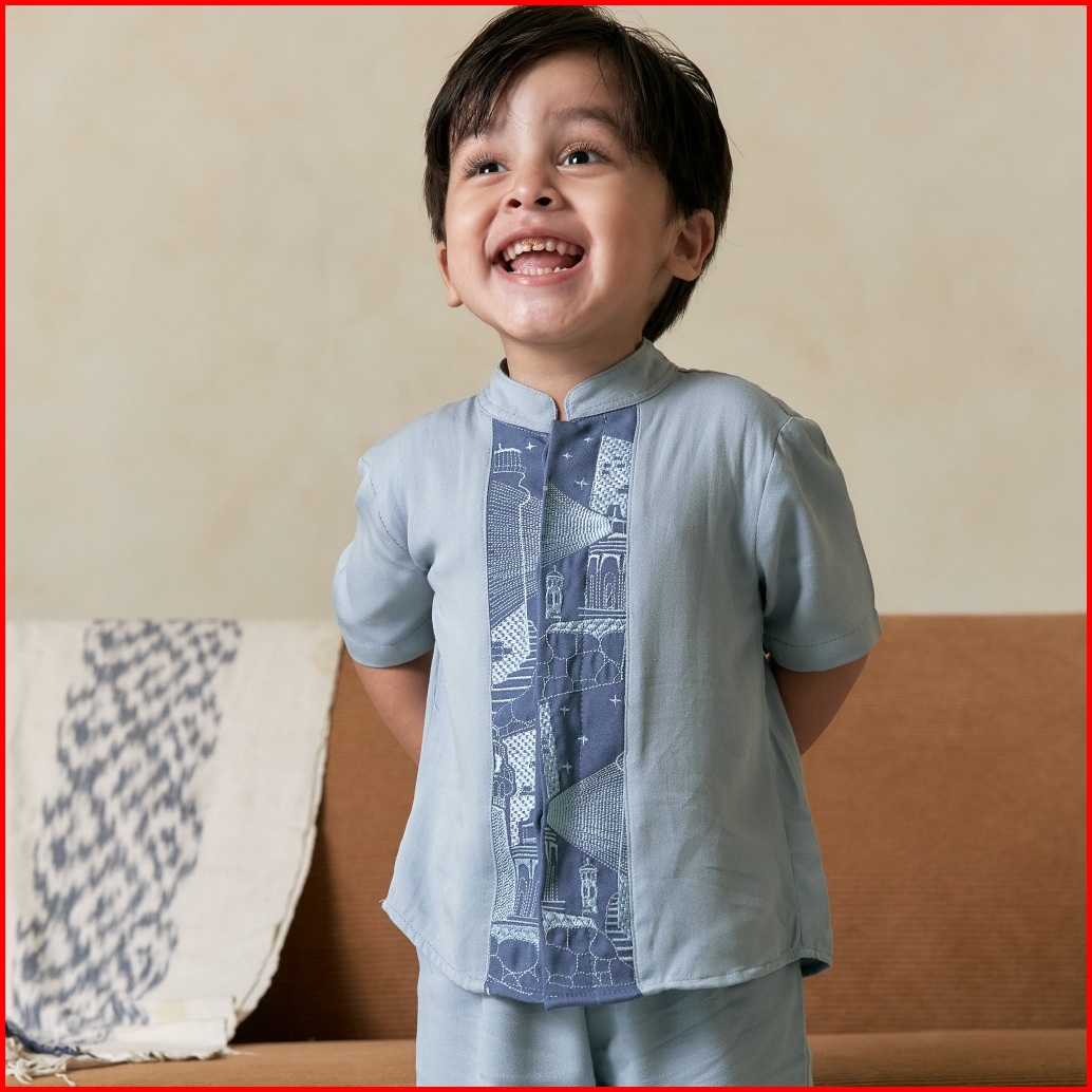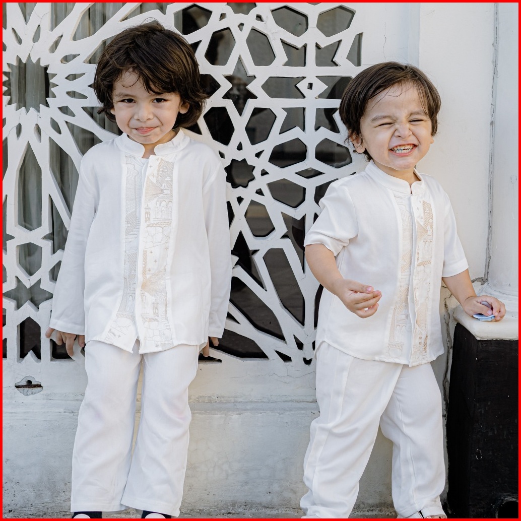 Hellomini 2-11t Abiyan Raya Koko Kembar Ayah Anak Katun Bordir Baju Koko Anak Laki Laki Hmn19
