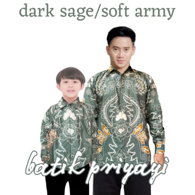 Kemeja Batik Anak Laki laki Warna Hijau Sage Green Batik Pria Dewasa Couple Batik Ayah dan Anak Laki Laki