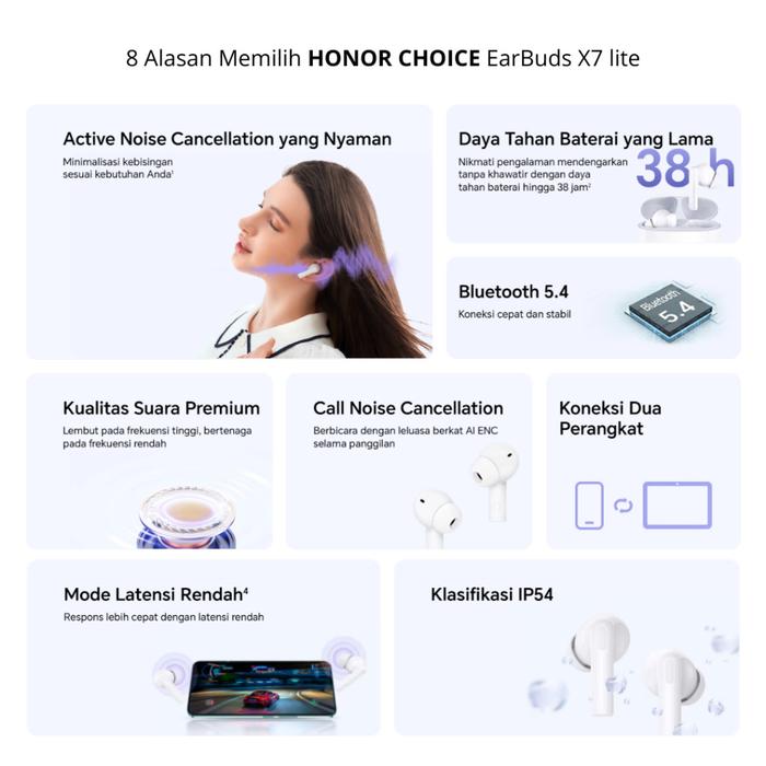 [Official Store ✔️] HONOR CHOICE EarBuds X7 lite Active Noise Convenient Cancellation 38 jam Battery Life Bluetooth 5.4