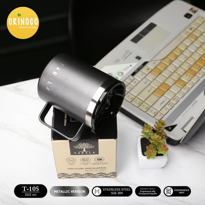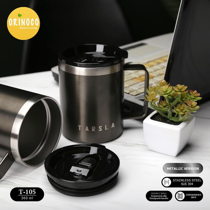GELAS CAFE WARKOP ORINOCO MUG & GELAS STAINLESS STEEL 304 AESTHETIC METALLIC WATER PRINTING TS105 COFFEE CUP 360ML