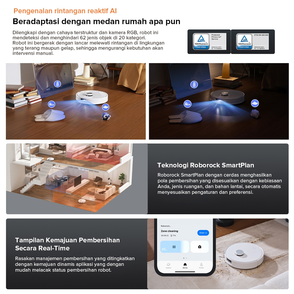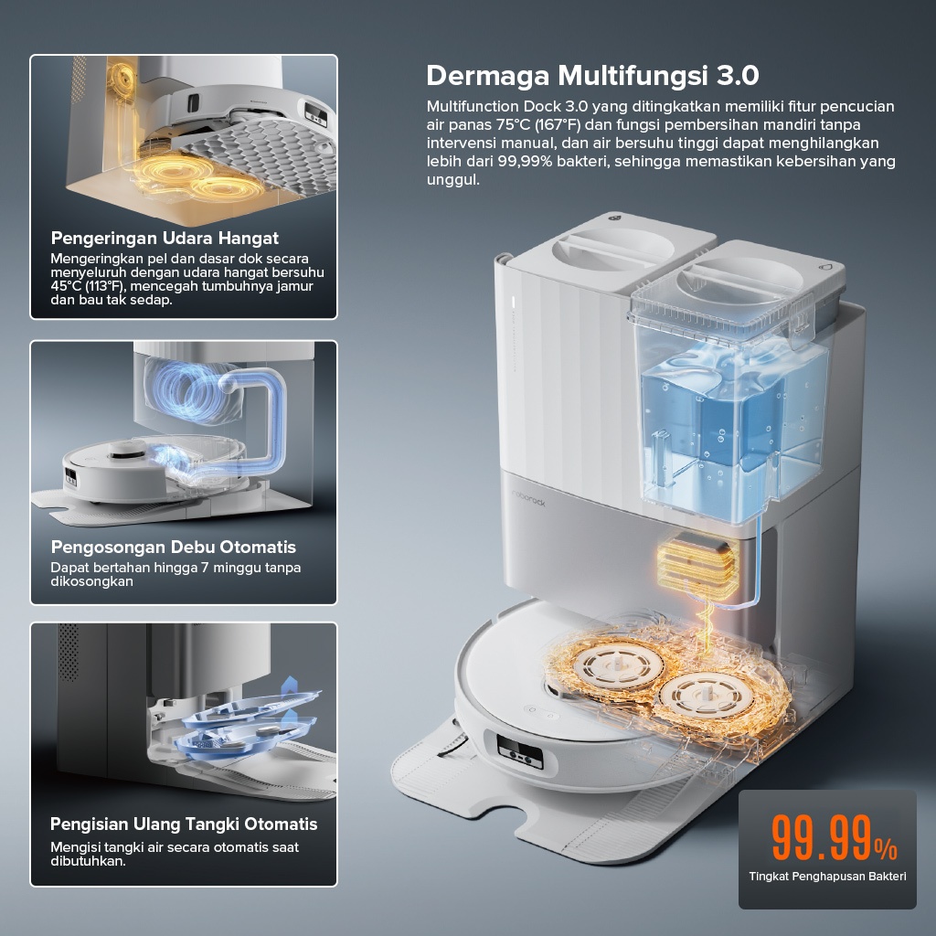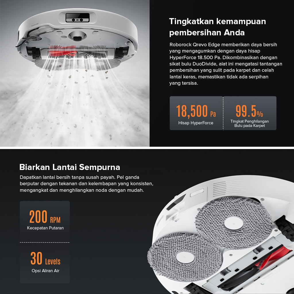 Roborock Qrevo Edge /QR 798Robot Penyedot Debu Super Hisap 10000Pa+ | Pel Air Panas | Pembersihan Senyap | Garansi Resmi
