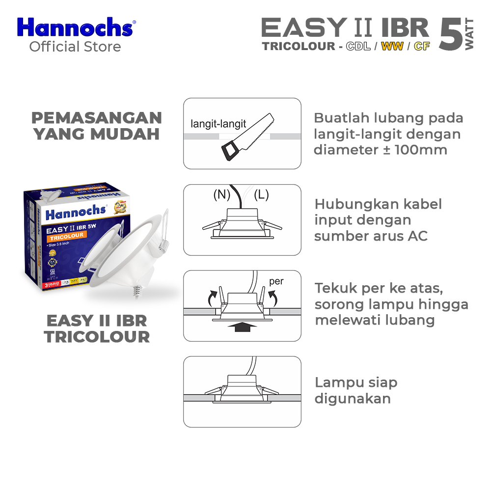 Hannochs Lampu Downlight LED EASY II 5W IBR isi 4pcs Tricolour INBOW
