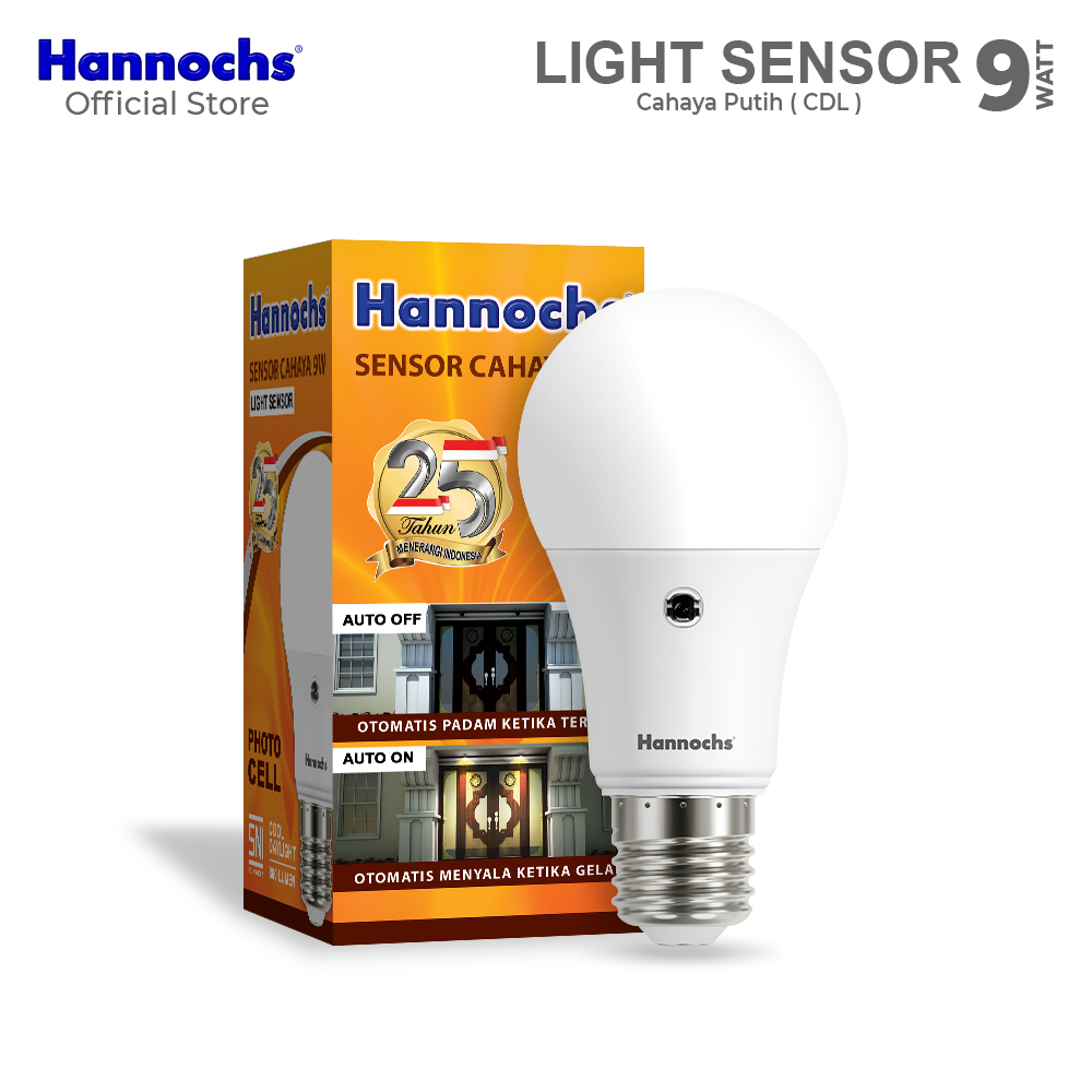 Hannochs Lampu Bohlam LED Light Sensor 9W cahaya Putih isi 2pcs