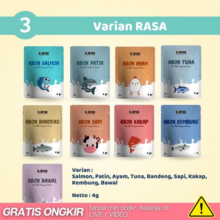 BEBITES AYAM, BEBITES BANDENG, BEBITES KAKAP, BEBITES KEMBUNG, BEBITES PATIN, BEBITES SALMON, BEBITES SAPI, BEBITES TUNA, BEBTIES BAWAL