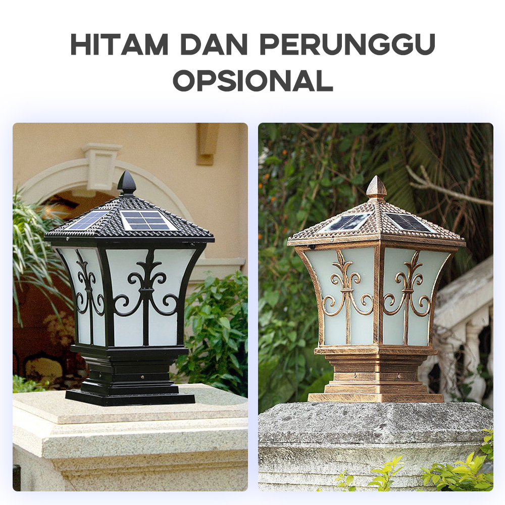 HAN RIVER 10W Lampu Taman Tenaga Matahari 3Warna Outdoor Lampu Pilar Multifungsi Lampu Pagar Tenaga Surya