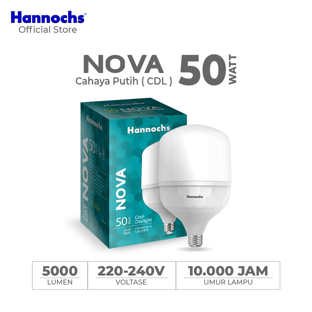 Hannochs Lampu Bohlam LED Nova 50W Cahaya Putih Paket isi 3pcs
