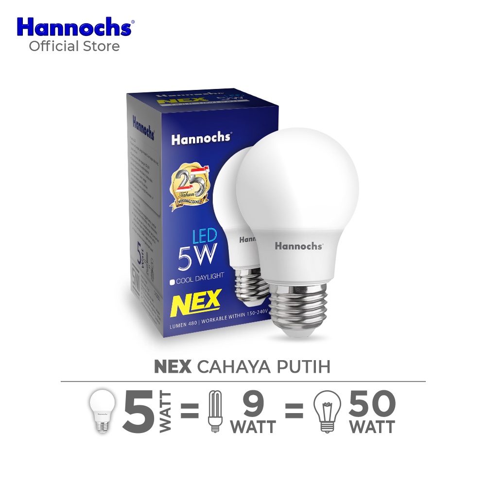 Hannochs Lampu Bohlam LED NEX 5W Cahaya Putih Paket isi 10pcs