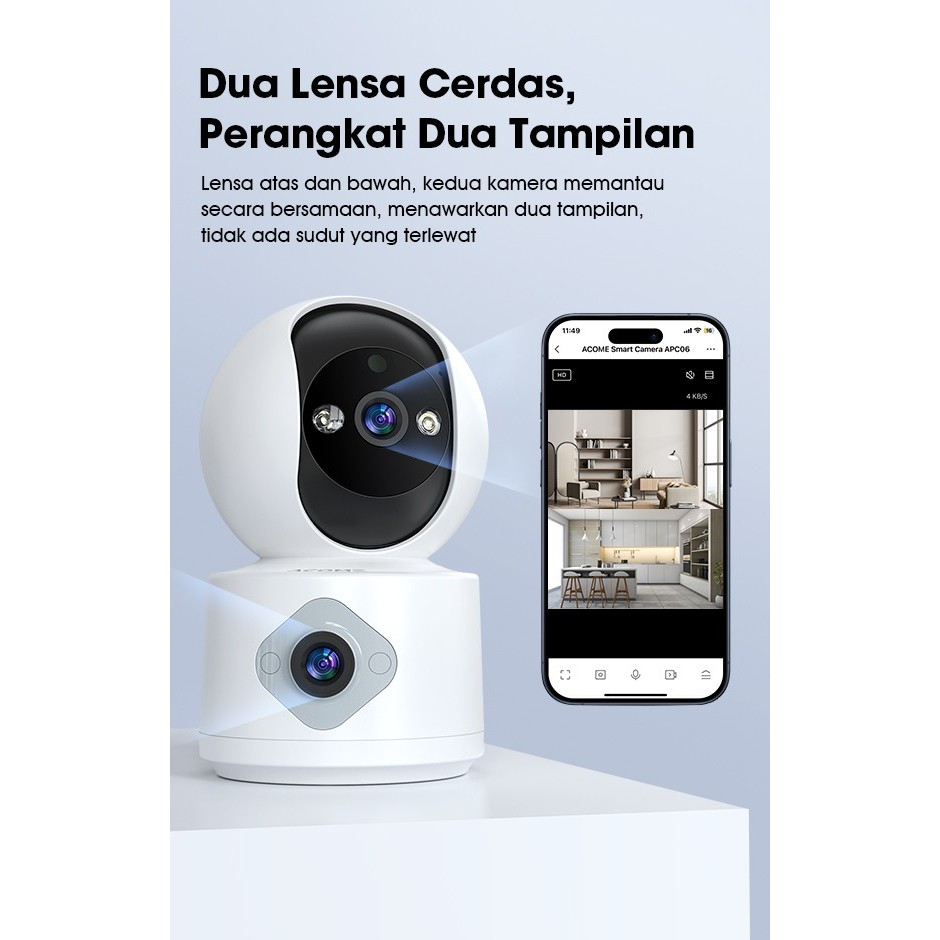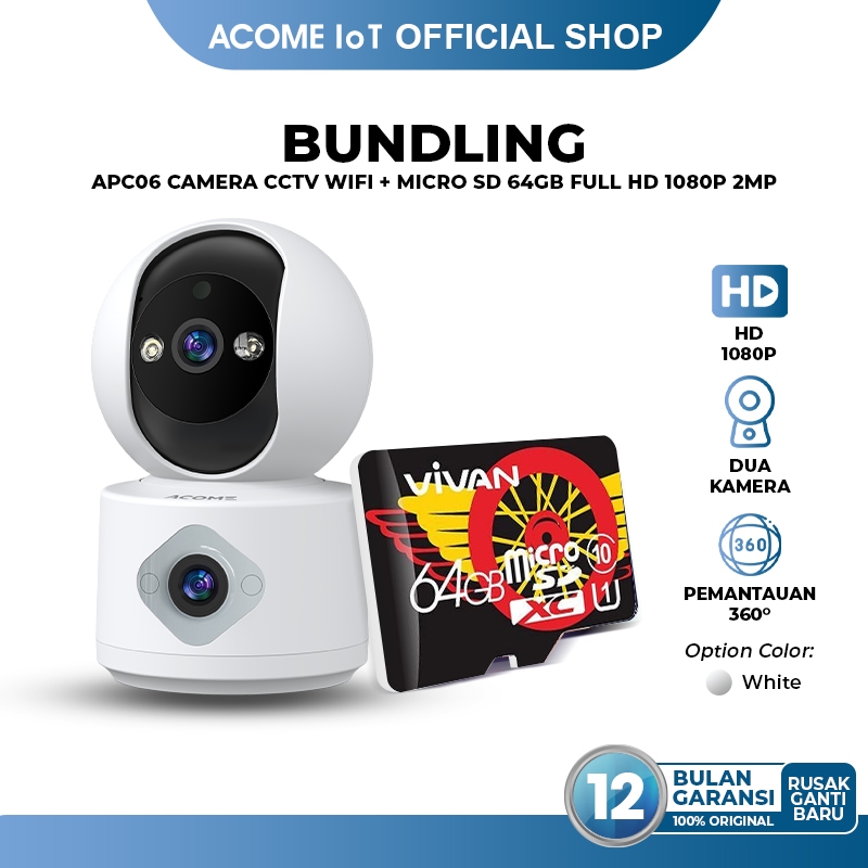 ACOME IoT Camera CCTV APC06 dengan Micro SD Card 64GB CCTV WiFi Indoor 2 Lensa Full HD 1080P/2MP