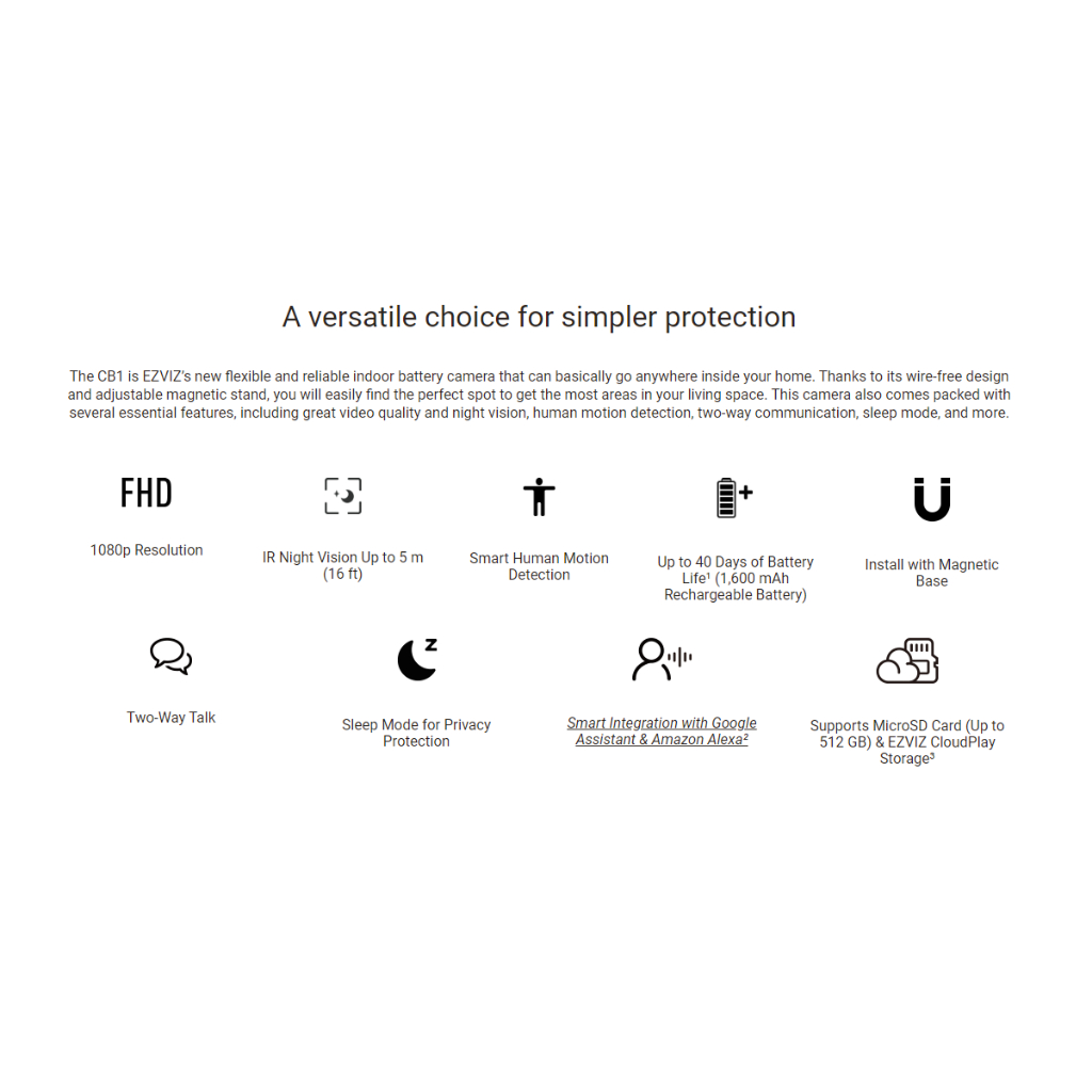Ezviz CB1 Smart Home Wifi Battery IP Camera CCTV Indoor Type C