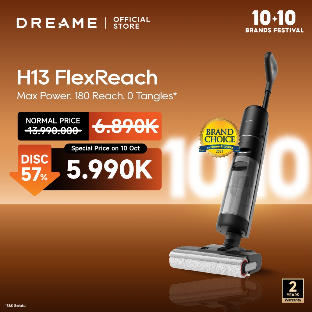 Dreame H13 FlexReach | 180°Lie-Flat | 18,000Pa | 90°C Hot Air Washing | 5-Mins FlashDry | Dual Edge