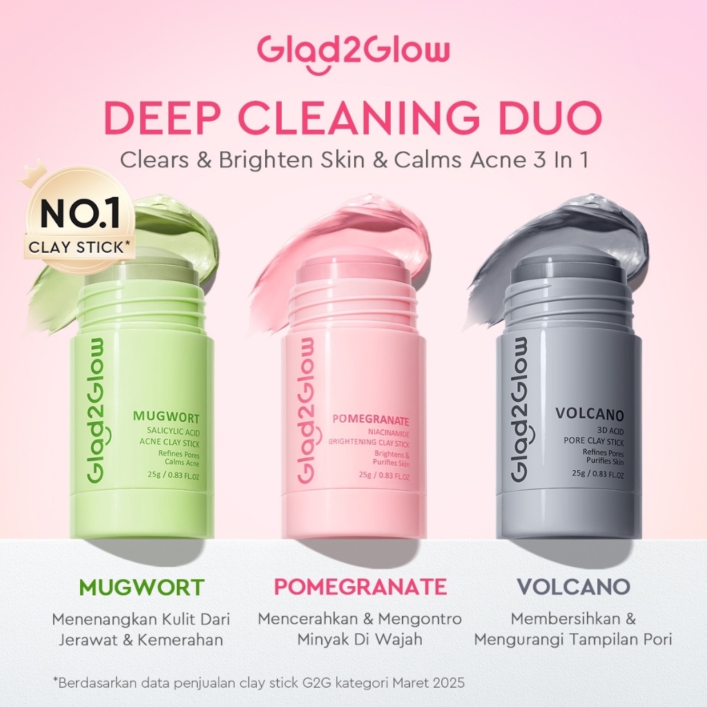 [Mall] GLAD 2 GLOW OFFICIAL CLAY STICK&FACE MASK COMPLETE SERIES-POMEGRANATE BRIGHTENING/MUGWORT G2GLOW G2G 1 PAKET