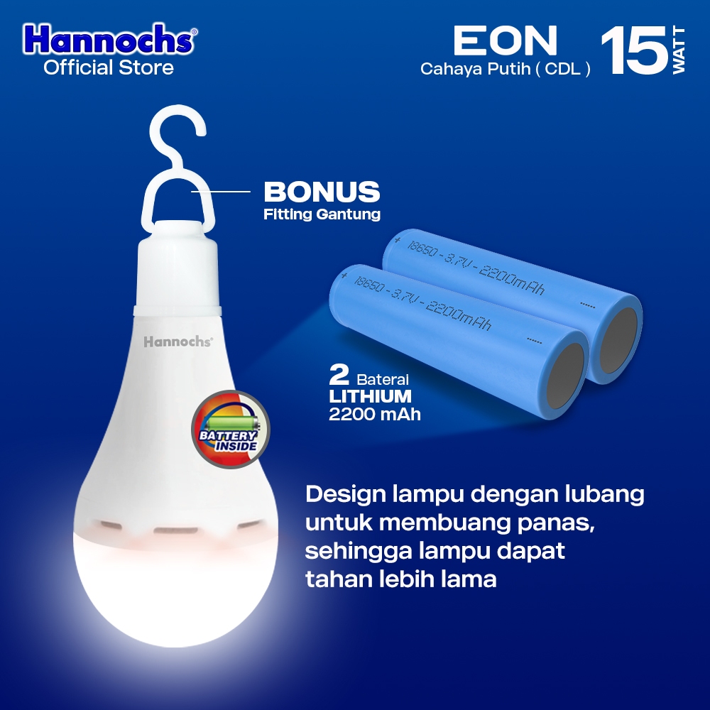 Hannochs Lampu Emergency Bohlam LED EON 15W Cahaya Putih