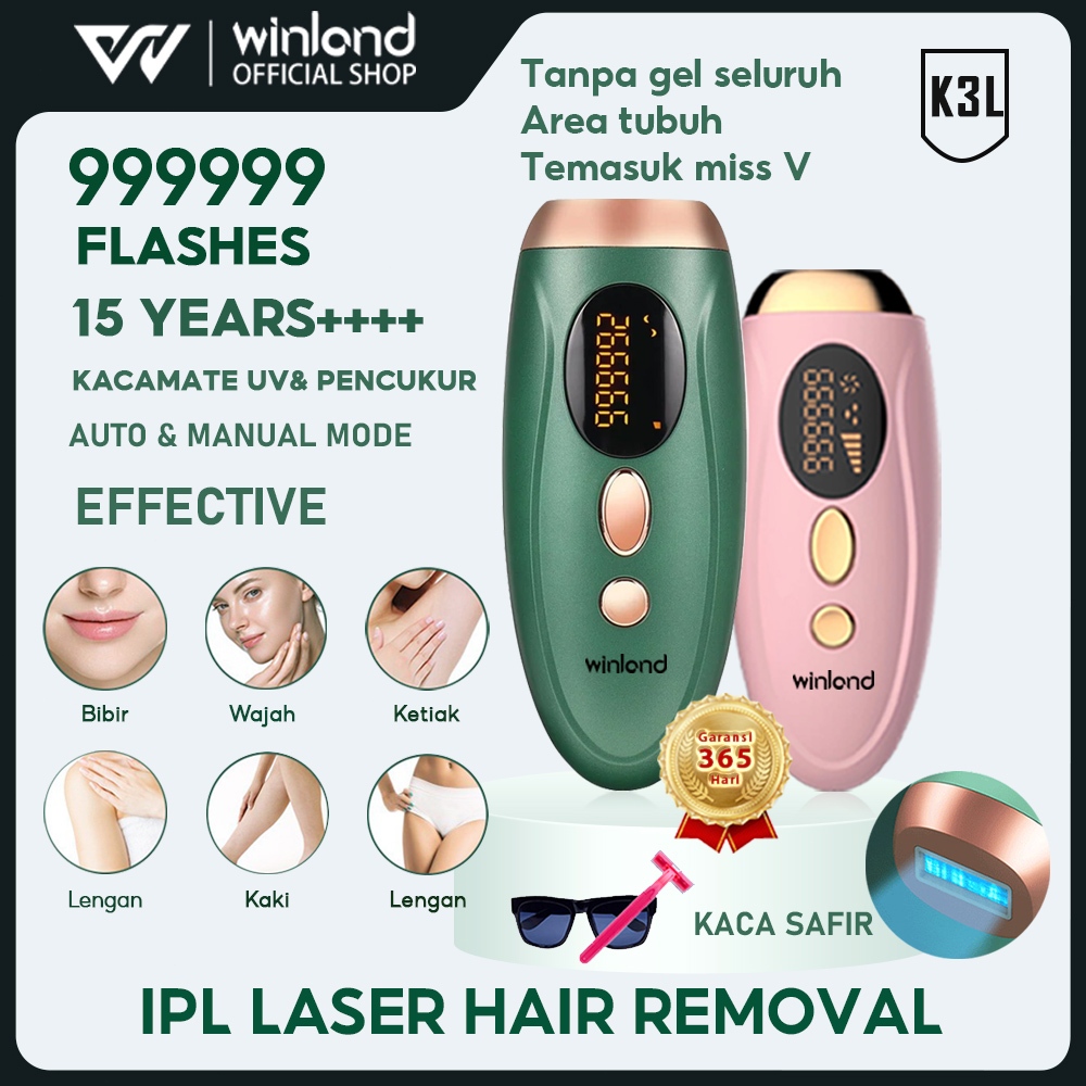 Winland IPL laser Hair Removal Permanent Perontok IPL laser Penghilang Bulu Sakit 999999 Flash