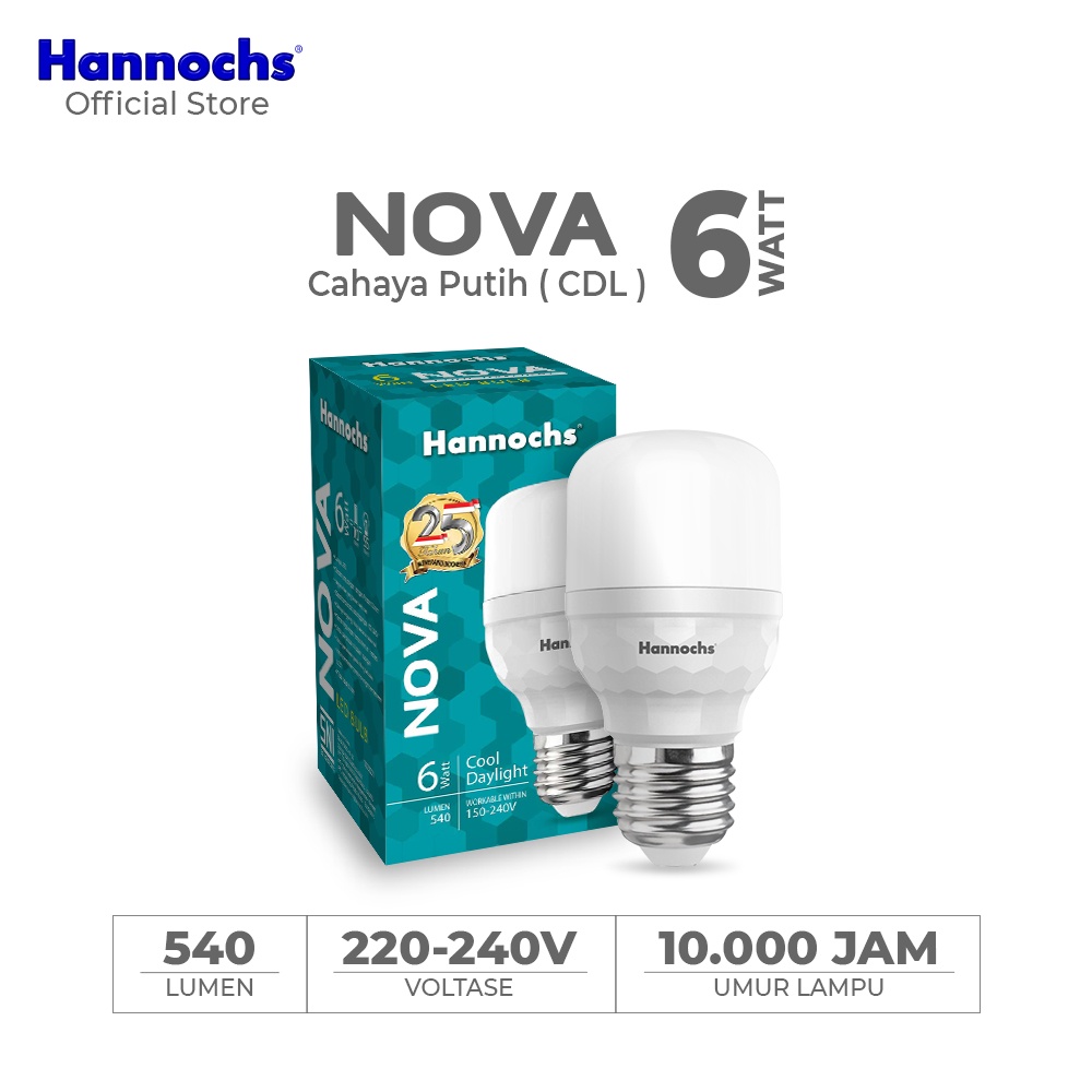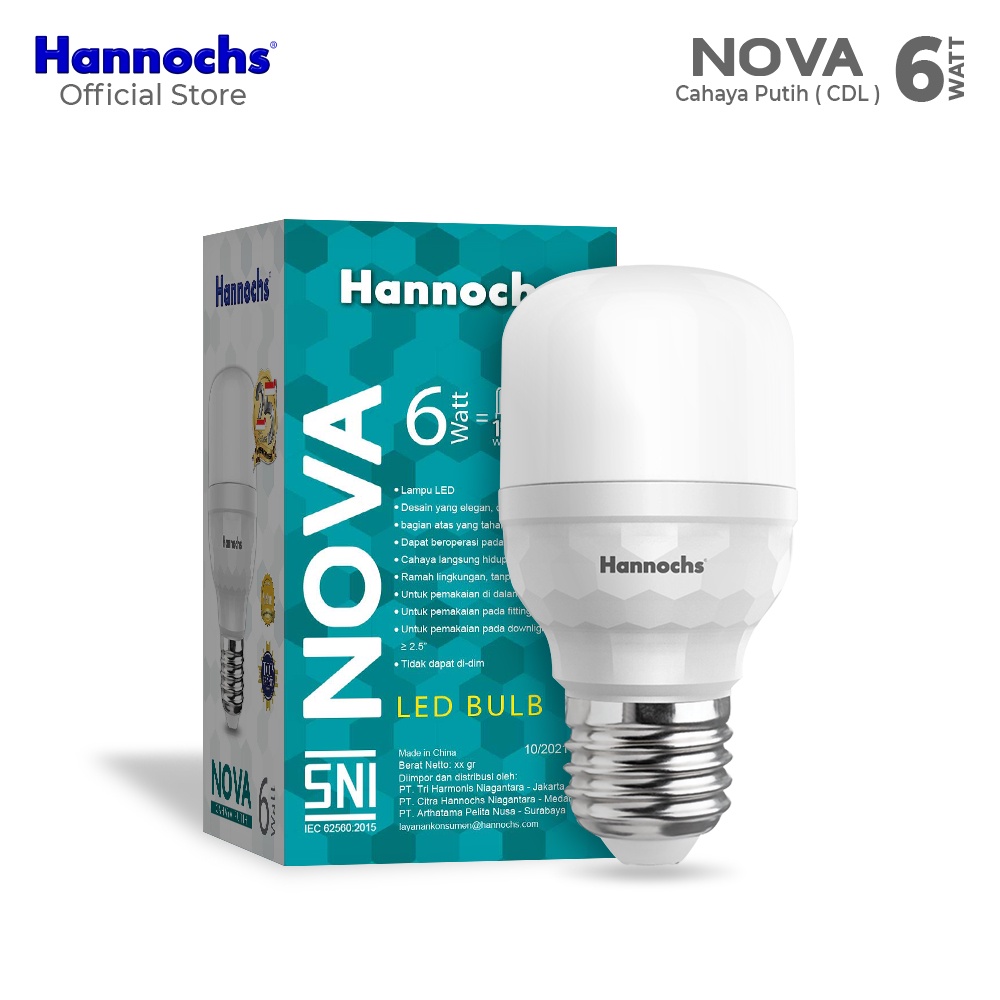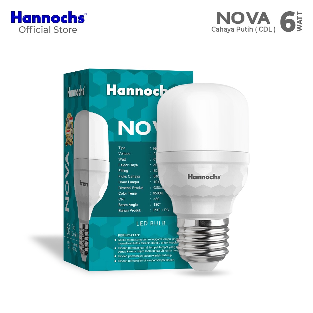 Hannochs Lampu Bohlam LED NOVA 6W Cahaya Putih Paket isi 10pcs