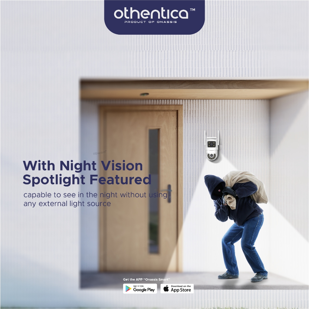 Othentica 370 CCTV Outdoor - Tahan Air IP68 | Dual Lens 6MP | Suara 2 Arah | Motion Detection | App