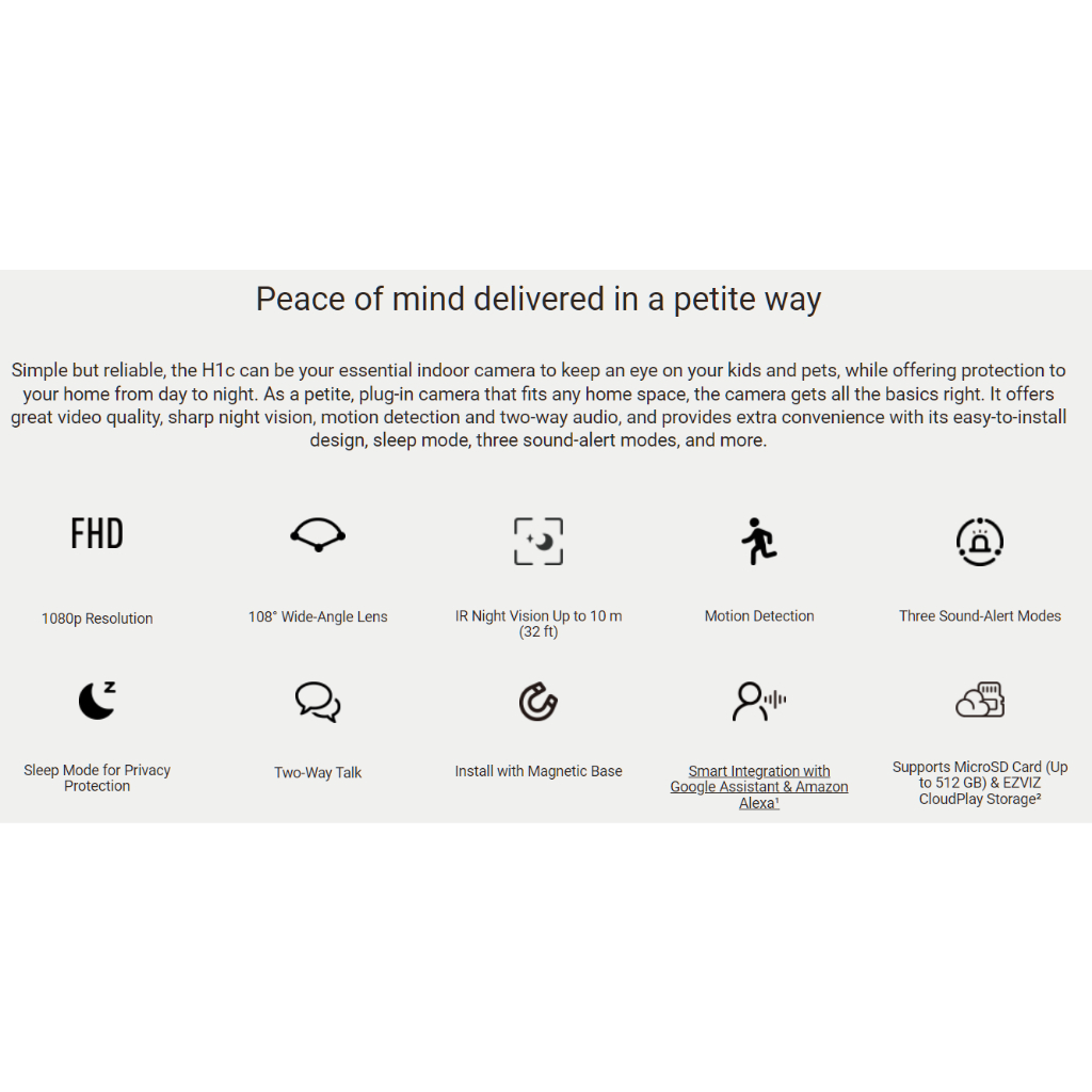 Ezviz H1c 2MP Smart Home IP Camera CCTV Indoor w/ SD Card 64/128/256GB