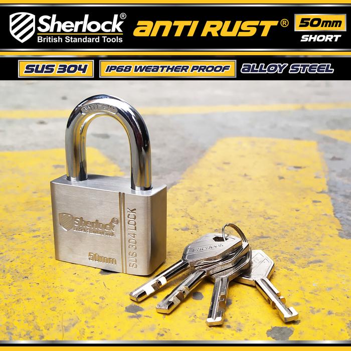 SHERLOCK Gembok ANTI RUST 50 mm pendek-Stainless Steel 304 anti karat - ANTI RUST 50 MM SHORT