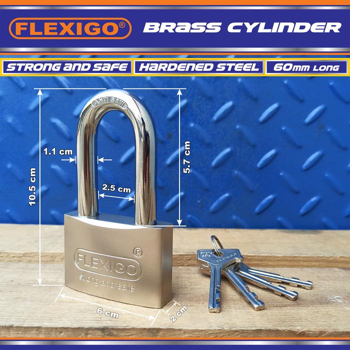 GEMBOK ANTI MALING FLEXIGO 60 mm PANJANG, SILINDER KUNINGAN anti KIMIA - 60 mm Long Brass