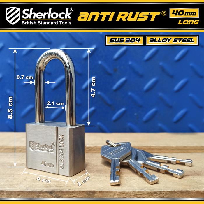SHERLOCK Gembok ANTI RUST 40 mm panjang-Stainless Steel 304 anti karat - ANTI RUST 40 MM LONG