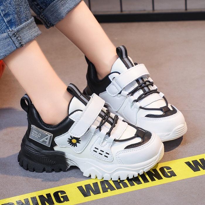 Sepatu Anak Sepatu Sneakers Anak Korea FLORA sepatu anak perempuan as166 by Axeline - Hitam, 26