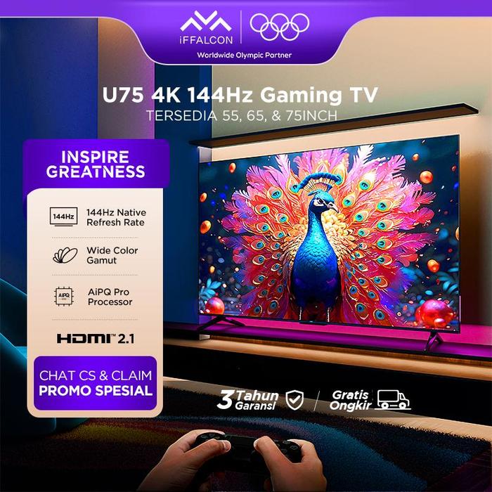 [GAMING TV] iFFALCON U75 New Series Google TV - 144Hz Native Refresh Rate - 288Hz VRR - AiPQ Pro Processor - Dolby Audio