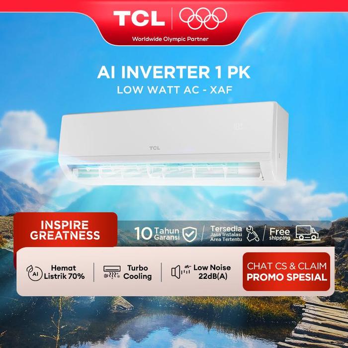 TCL AC Inverter 1PK - AI Tech Hemat Listrik 70% - Anti Bising - Cepat Dingin - Low Watt - 1/2 0.5 PK | TAC-09CSD/XAFI2