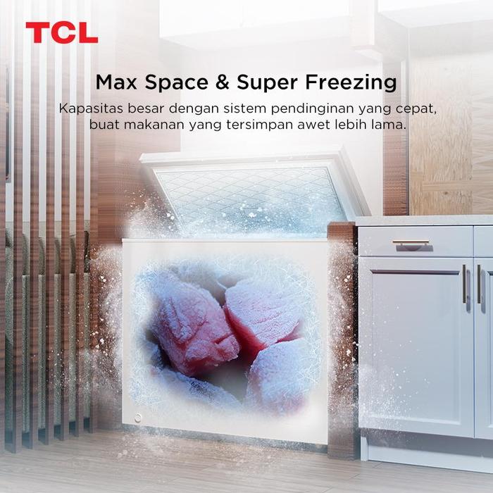 TCL Chest Freezer Kapasitas 210 Liter Super Freezing - Storage Basket Besar - Pembuangan Limbah Air - LED | TCF-210ZID