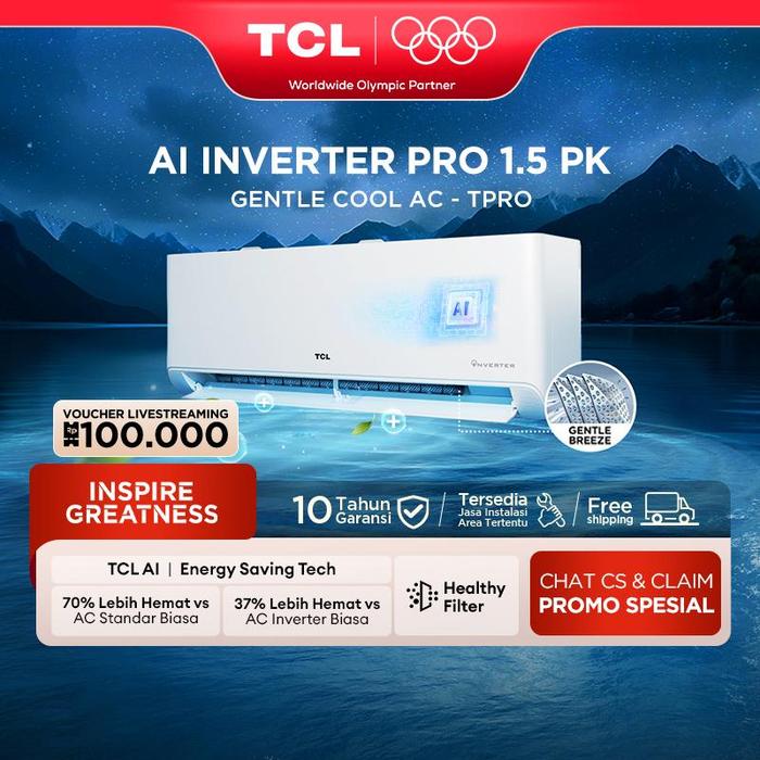TCL AC Inverter 1.5 PK - Gentle Cool - Healthy Filter - Hemat Listrik - Anti Bising - Cepat Dingin | TAC-12CSD/TPHI2