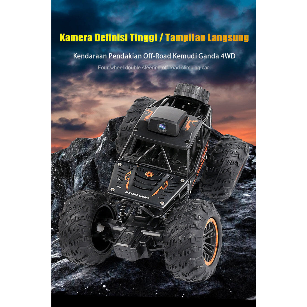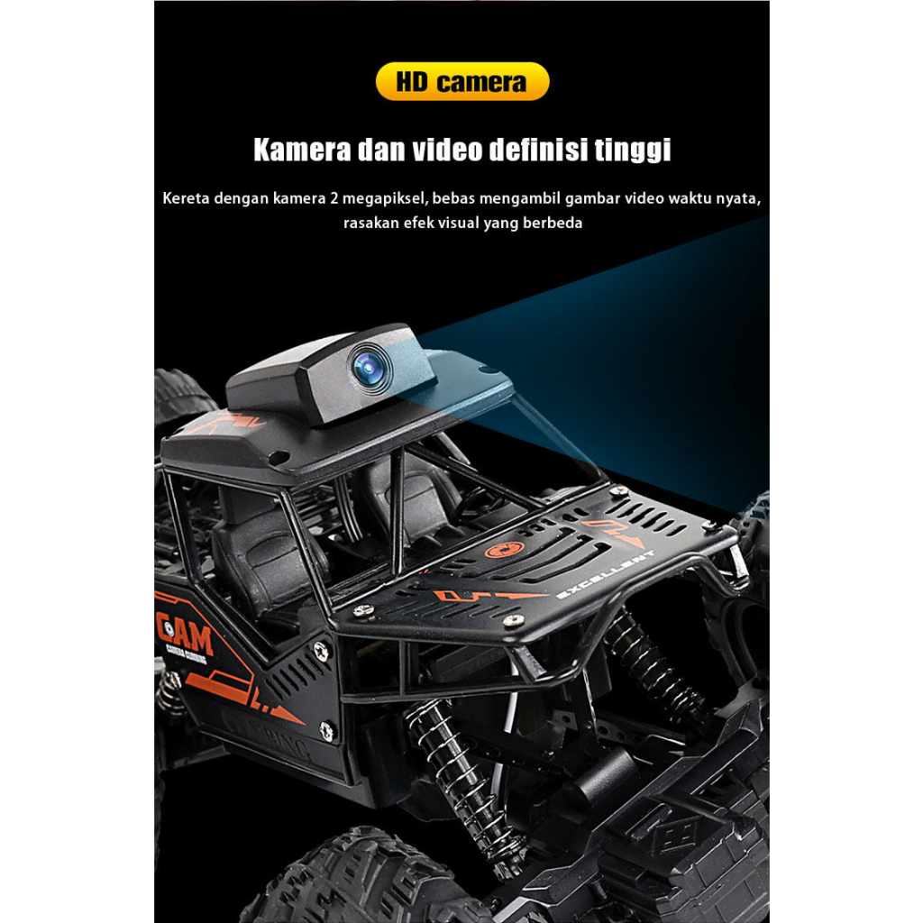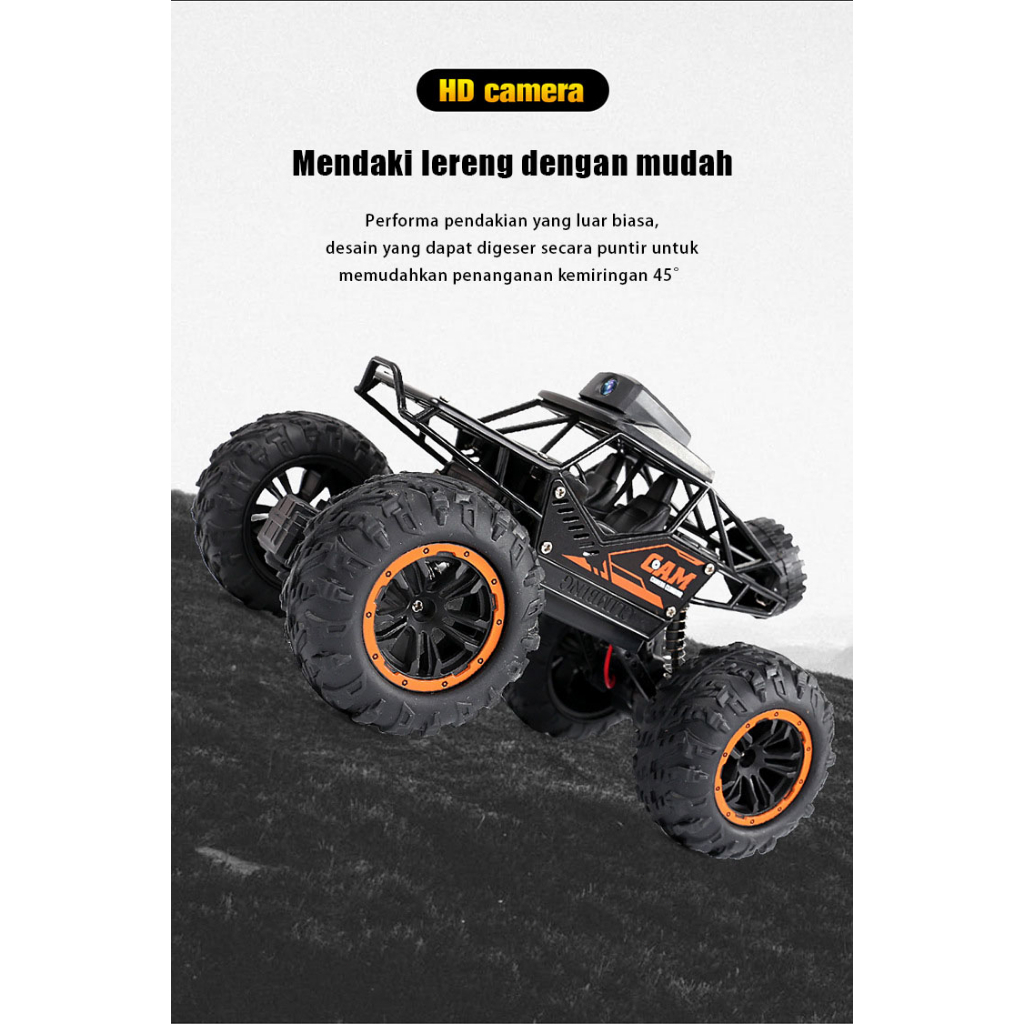 (ada stok, dikirim dari jakarta) original new super large remote control off-road vehicle with camera charging alloy four-wheel drive drift high-speed climbing racing monster car toy