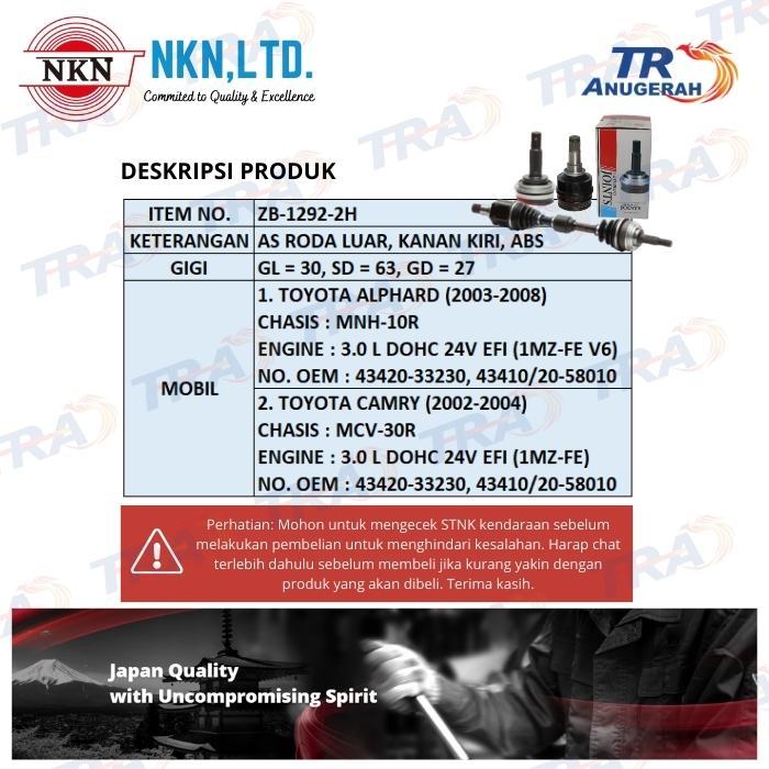CV Joint AS Roda Luar NKN Toyota Alphard, Camry, Previa