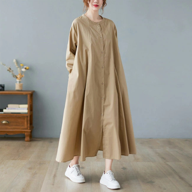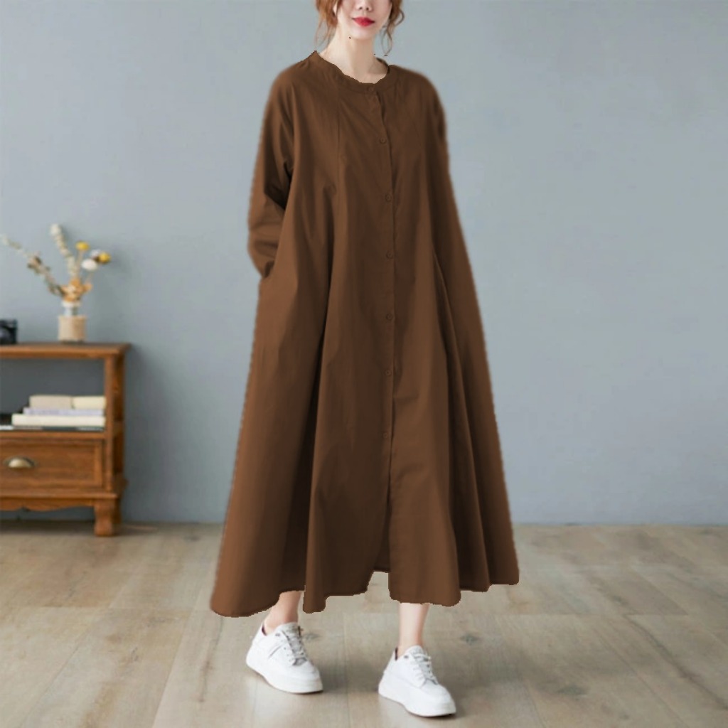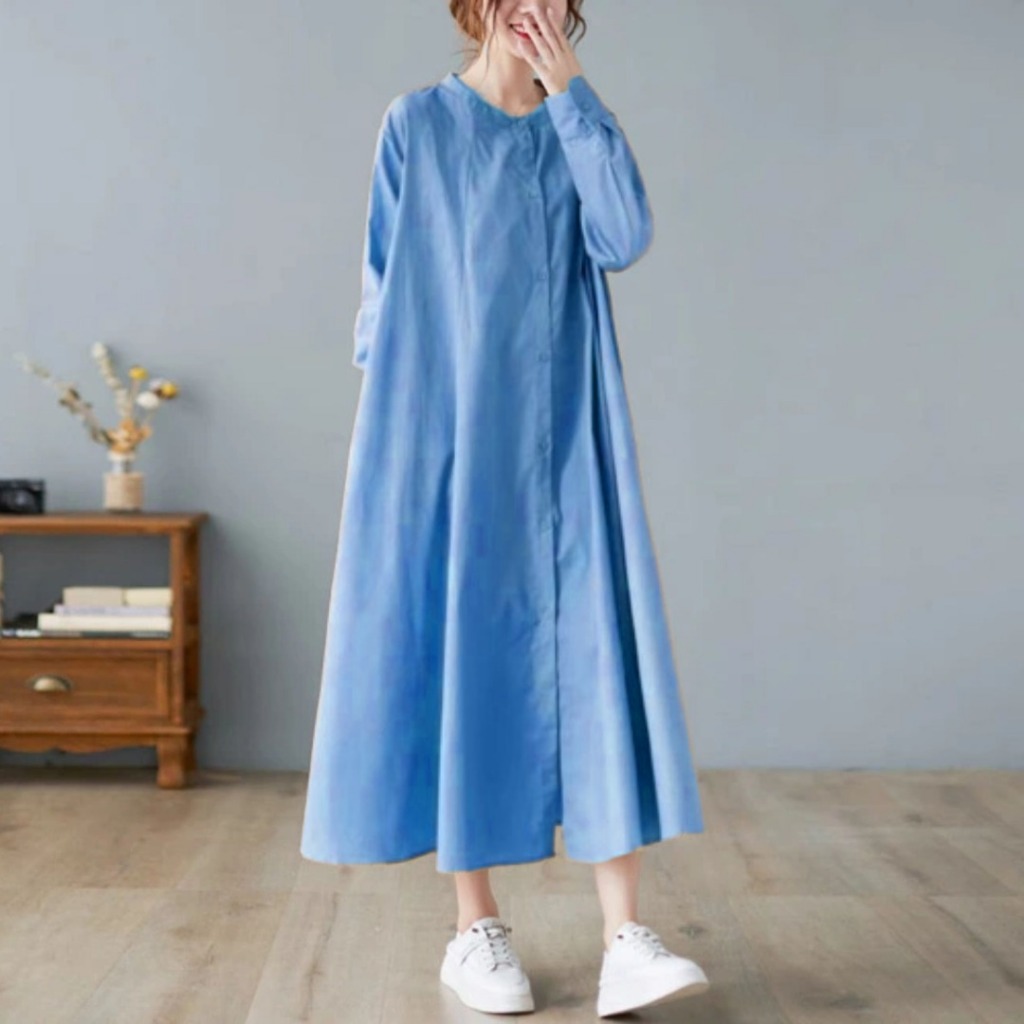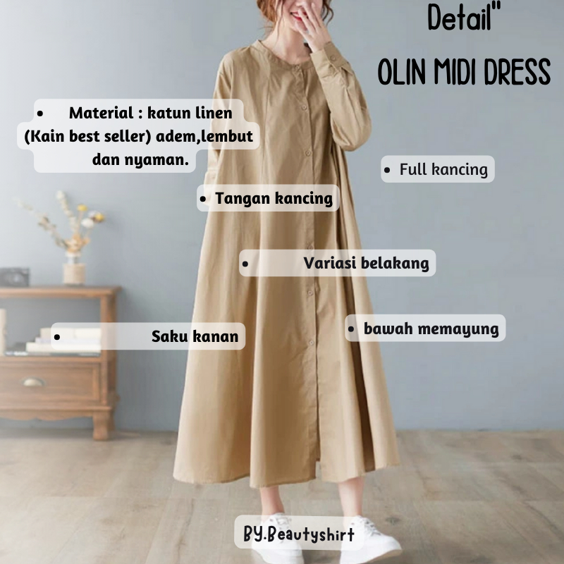 Beautyshirt Olin Midi Dress Wanita Korean Style Bahan Katun Linen Rami Hijab Style Muslim Kekinian