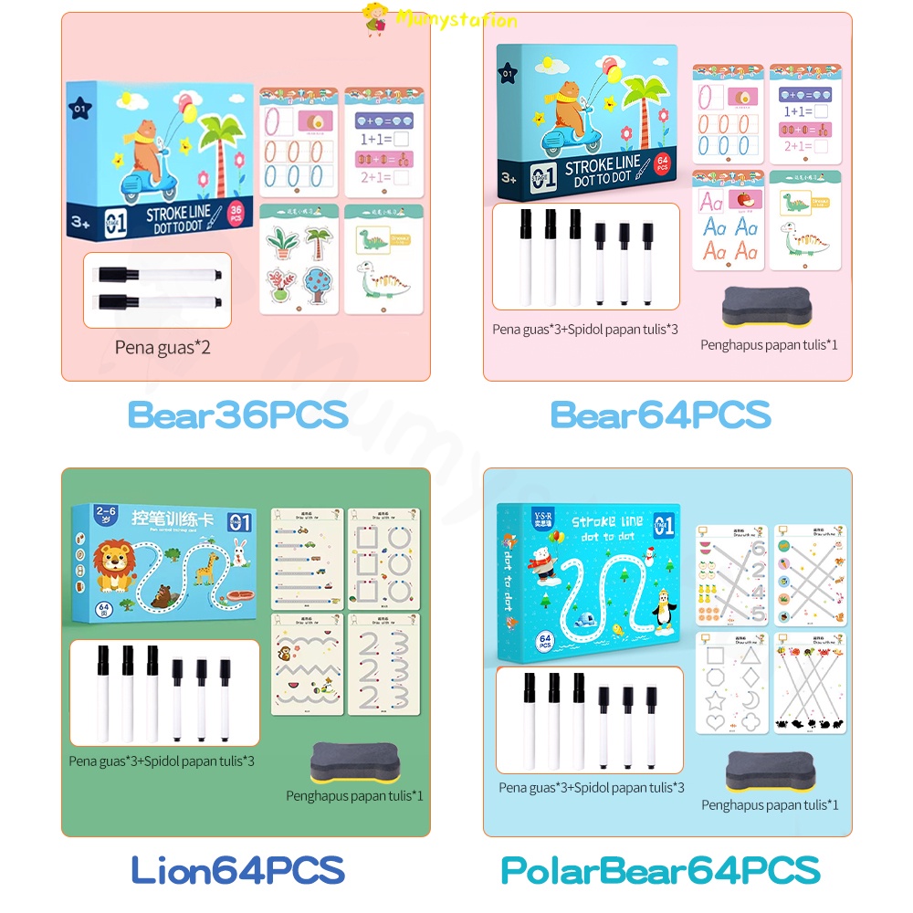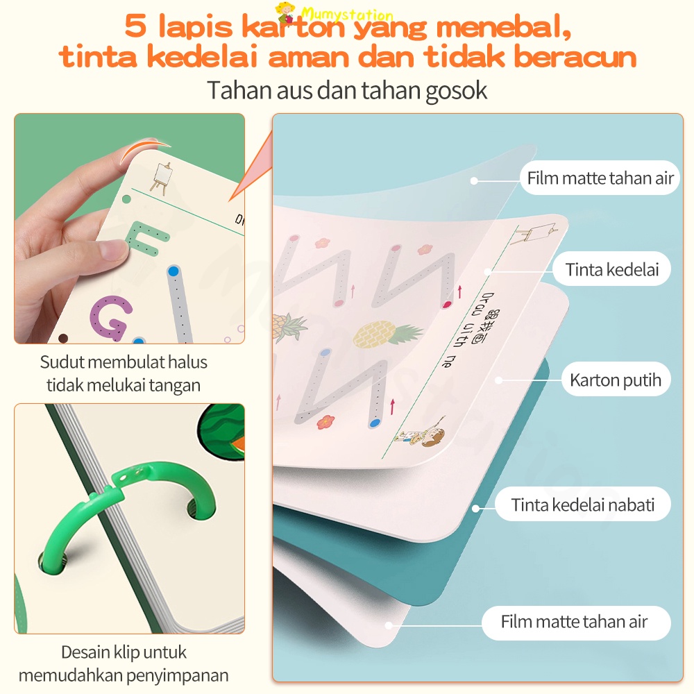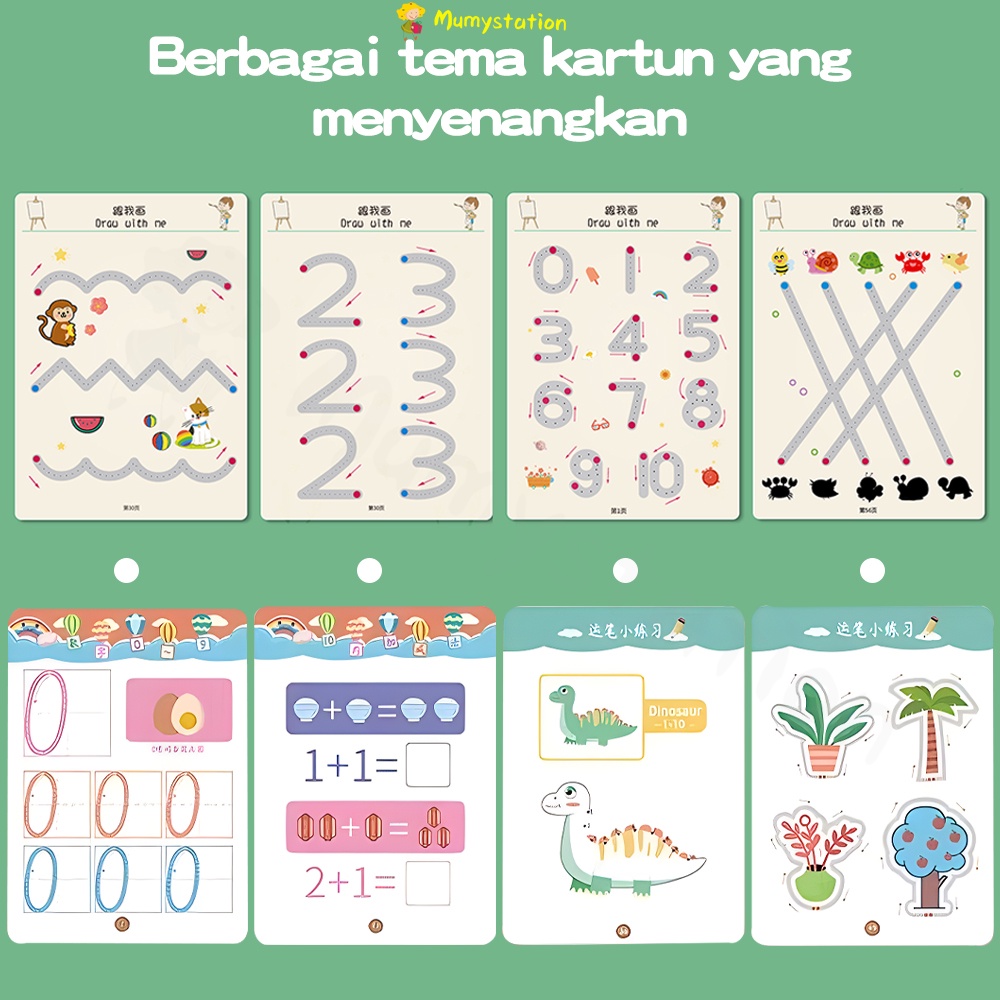 Mumystation Buku belajar anak Reusable tivity book Tk Buku aktivitas anak Magic Workbook Set