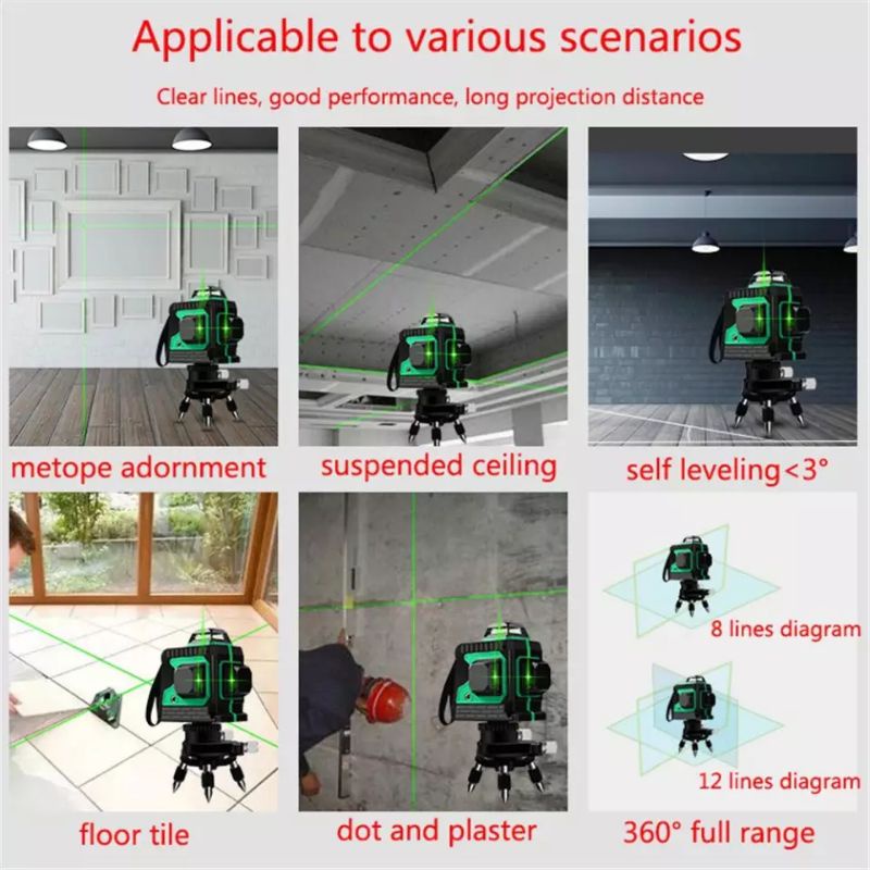 paket laser level tri 3D 12 line 4D 16 line rotary cross line horisontal vertikal self levelling