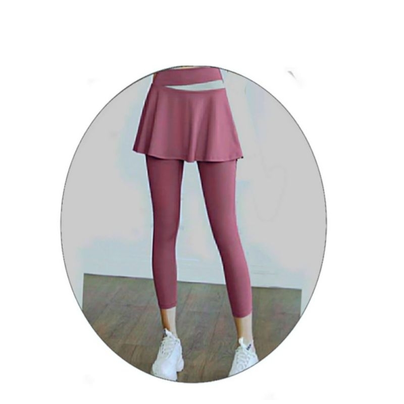 Legging Celana Olahraga Wanita Rok Celana Skirt Highwaist Polos Yoga Dua Lapis Gym