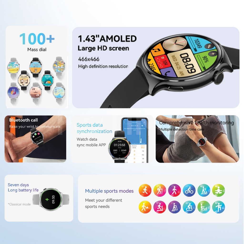 FOTIME Amoled Smartwatch SW09 Sports Bluetooth Call Jam Tangan Pintar Unisex 1.43inch HD Screen