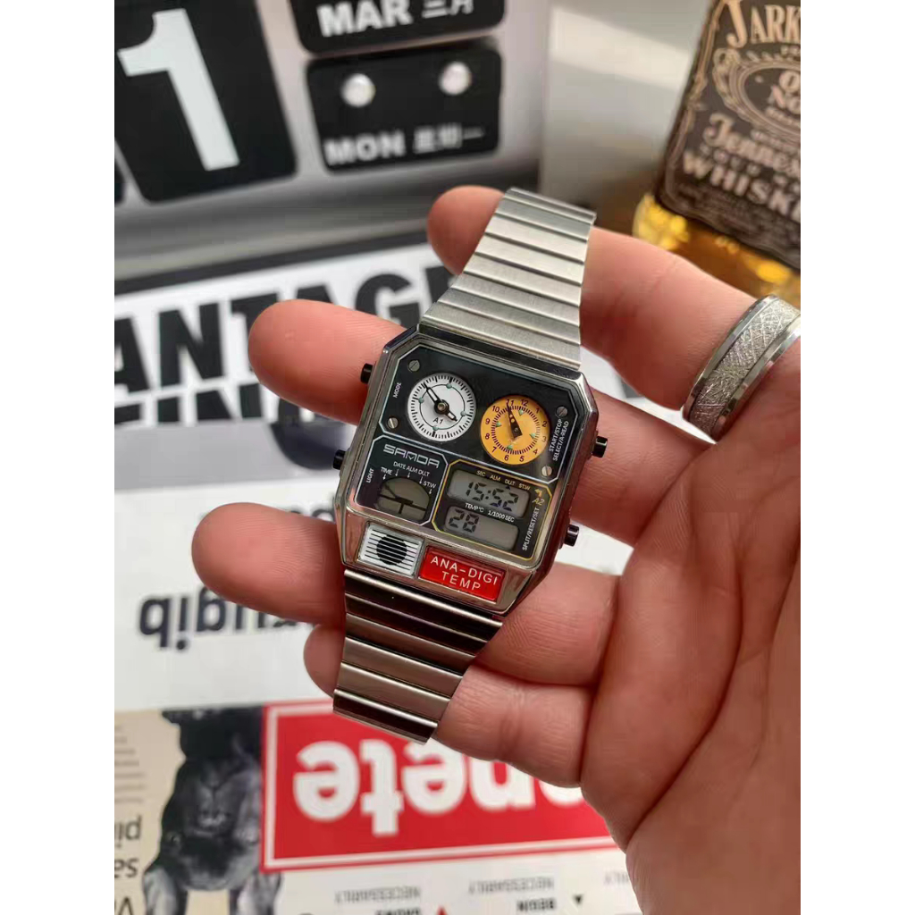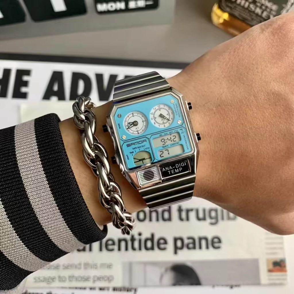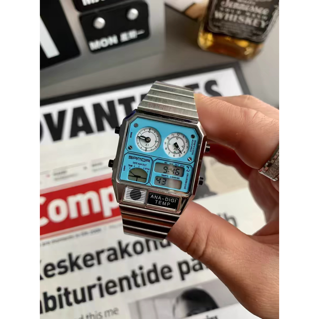 Jam tangan pria/wanita Jam tangan elektronik multifungsi persegi asli